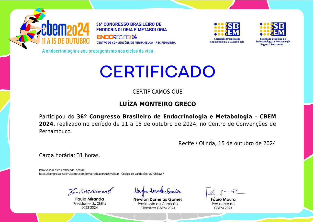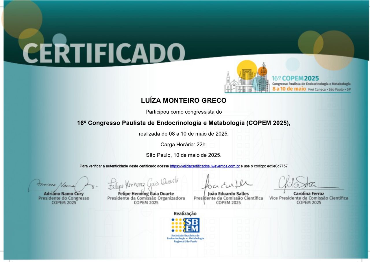 Quais são as principais especialidades de Luiza Monteiro Greco?Luiza Monteiro Greco é endocrinologista. Te mostramos alguns dos serviços oferecidos pelo especialista graças à sua trajetória e vasta experiência: Primeira consulta Endocrinologia e Metabologia, Tratamento de doenças na hipófise, Tratamento para menopausa, Consulta particular, Suplementação de vitaminas, Tratamento de doenças da tireoide, Acompanhamento para vida saudável e longevidade, Atendimento a gestantes com endocrinopatias, Tratamento de doenças adrenais, Tratamento para diabetes mellitus tipo 1.