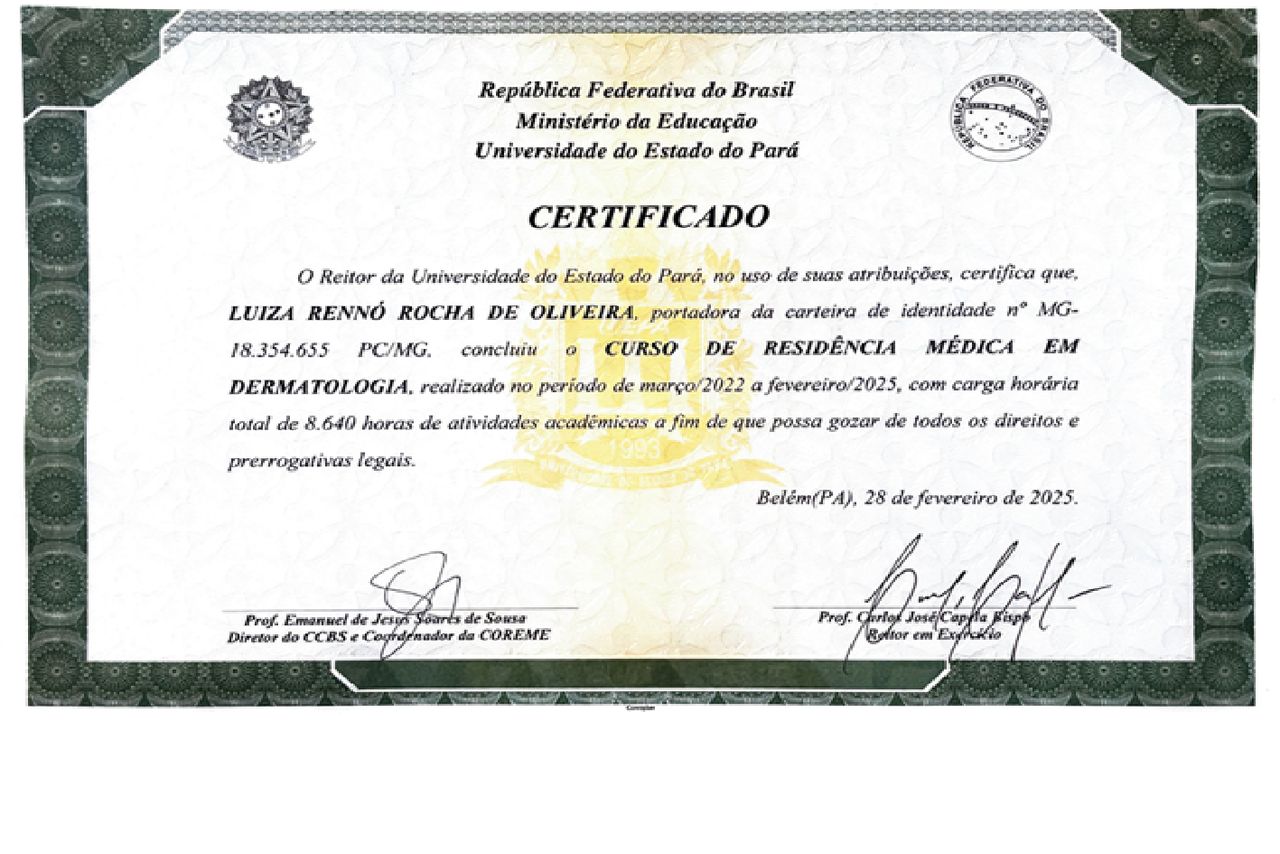 Quais são as principais especialidades de Luiza Rennó?Luiza Rennó é dermatologista. Te mostramos alguns dos serviços oferecidos pelo especialista graças à sua trajetória e vasta experiência: Primeira consulta Dermatologia, Aplicação da toxina botulínica, Preenchimento facial, Exérese e sutura de lesões de pele, Peeling químico, Biópsia de pele, Cirurgia da unha, Aplicação de Bioestimulador de colágeno (Sculptra ou Radiesse), Teleconsulta dermatologia, Consulta tricologia.