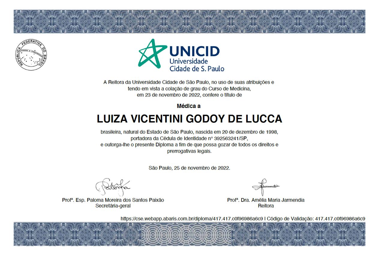 Onde fica o consultório de Luiza Vicentini Godoy De Lucca?Luiza Vicentini Godoy De Lucca atende em: