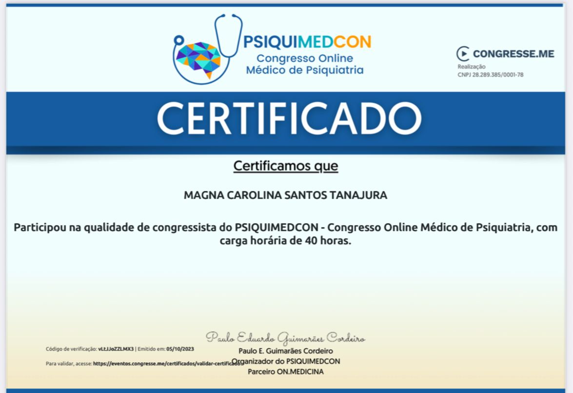 Psiquiatria pelo Hospital Regional de Presidente Prudente (HRPP) - São Paulo.