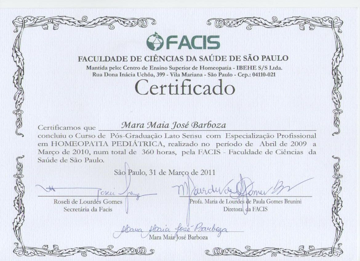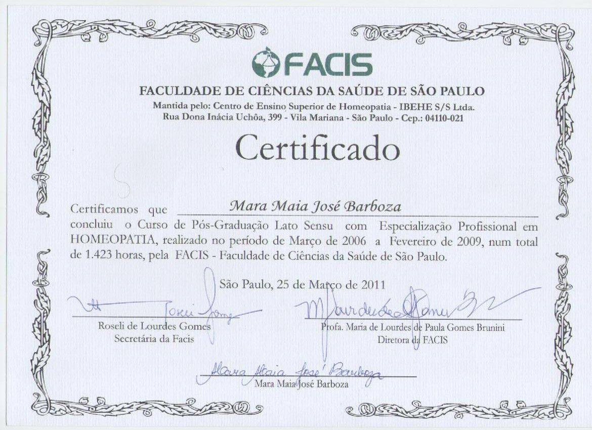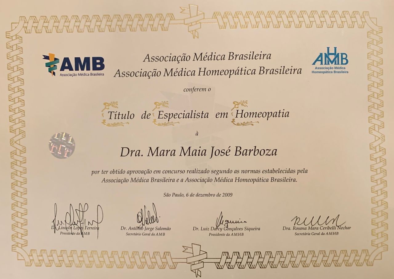 Médica há mais de 20 anos . Especialização em homeopatia, pediatria, terapia cognitiva comportamental . Elaboradora da psicoterapia homeopática .