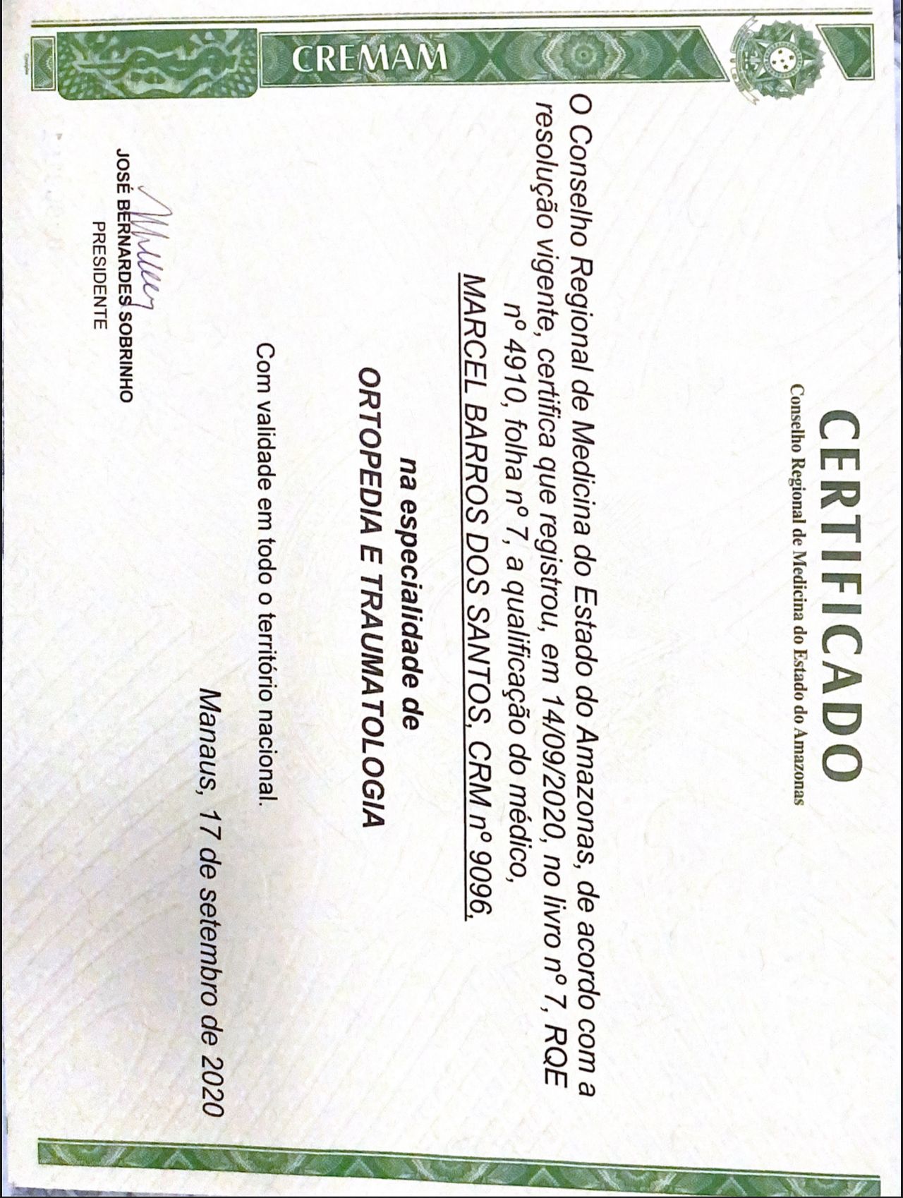 Número de registro: CRM AM 9096 RQE 4910