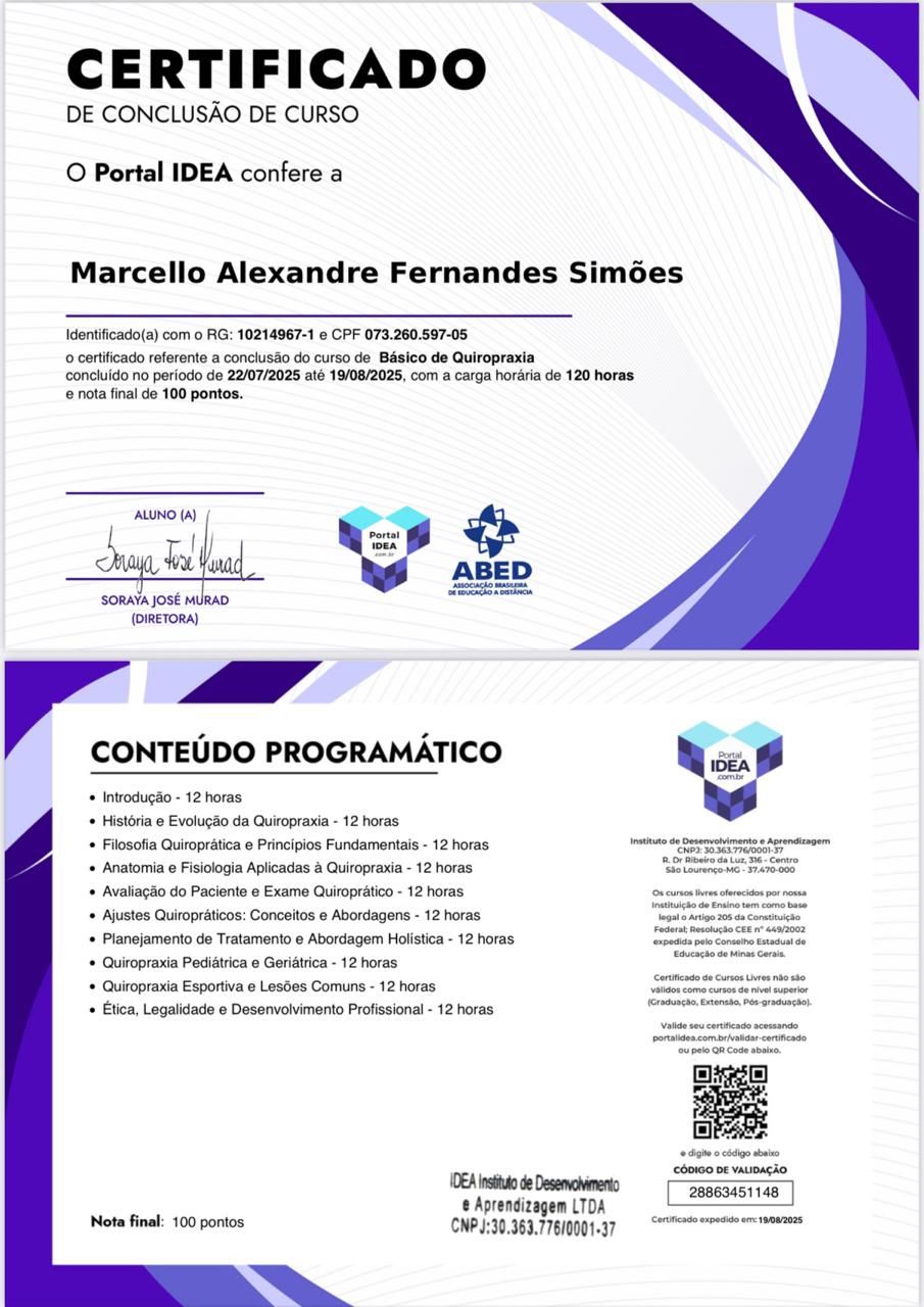 Sou fisioterapeuta com ampla experiência no tratamento de dores musculoesqueléticas, utilizando técnicas manuais avançadas de Quiropraxia, Fisioterapia Neurologica, ABA, TEA e Reeducação Postural Global (RPG). Meu foco é oferecer um atendimento individualizado, que busca não apenas aliviar a dor, mas também tratar a causa do problema, promovendo saúde, mobilidade e qualidade de vida.