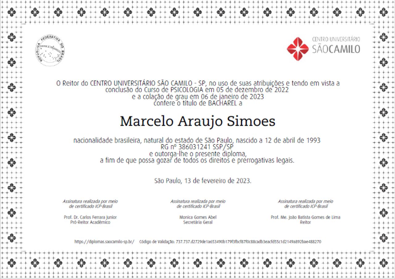 Eu me chamo Marcelo, sou psicólogo com 3 anos de experiência em atendimento clínico a pacientes adultos e idosos de forma online.