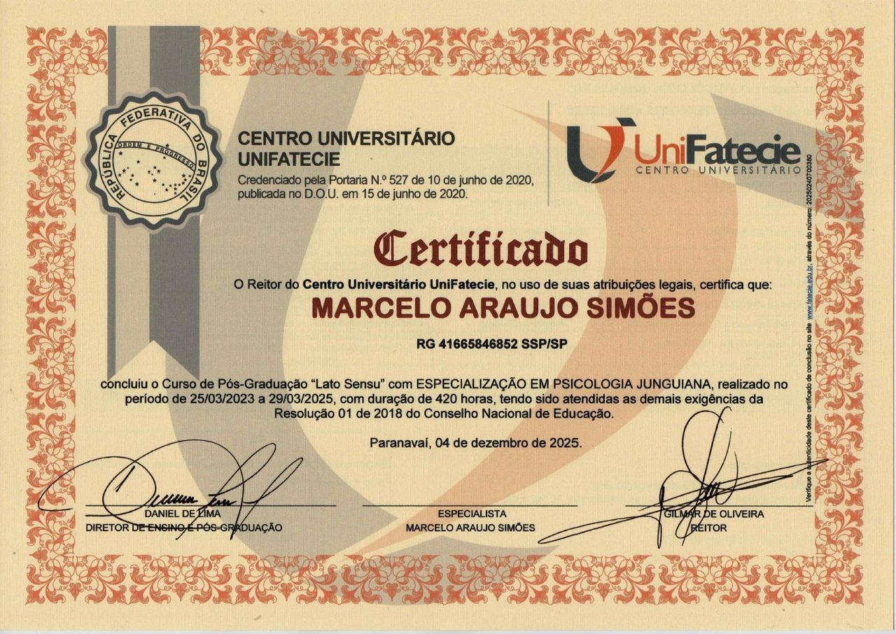 Tenho especialização completa em Psicologia Junguiana pelo IJEP e atendo na abordagem da Psicologia Analítica de Jung. Faço supervisão em grupo e análise nesta linha com o objetivo de propiciar, através do estudo contínuo, um melhor atendimento a você.