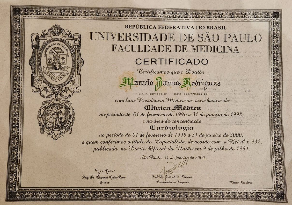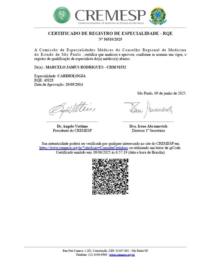 Sou reconhecido como especialista pelas principais sociedades médicas do país. Em 2024, obtive certificação internacional em conhecimentos cardiovasculares pelo American College of Cardiology, e, em 2025, passei a integrar essa instituição como Fellow, distinção internacional concedida a profissionais com excelência comprovada na área.