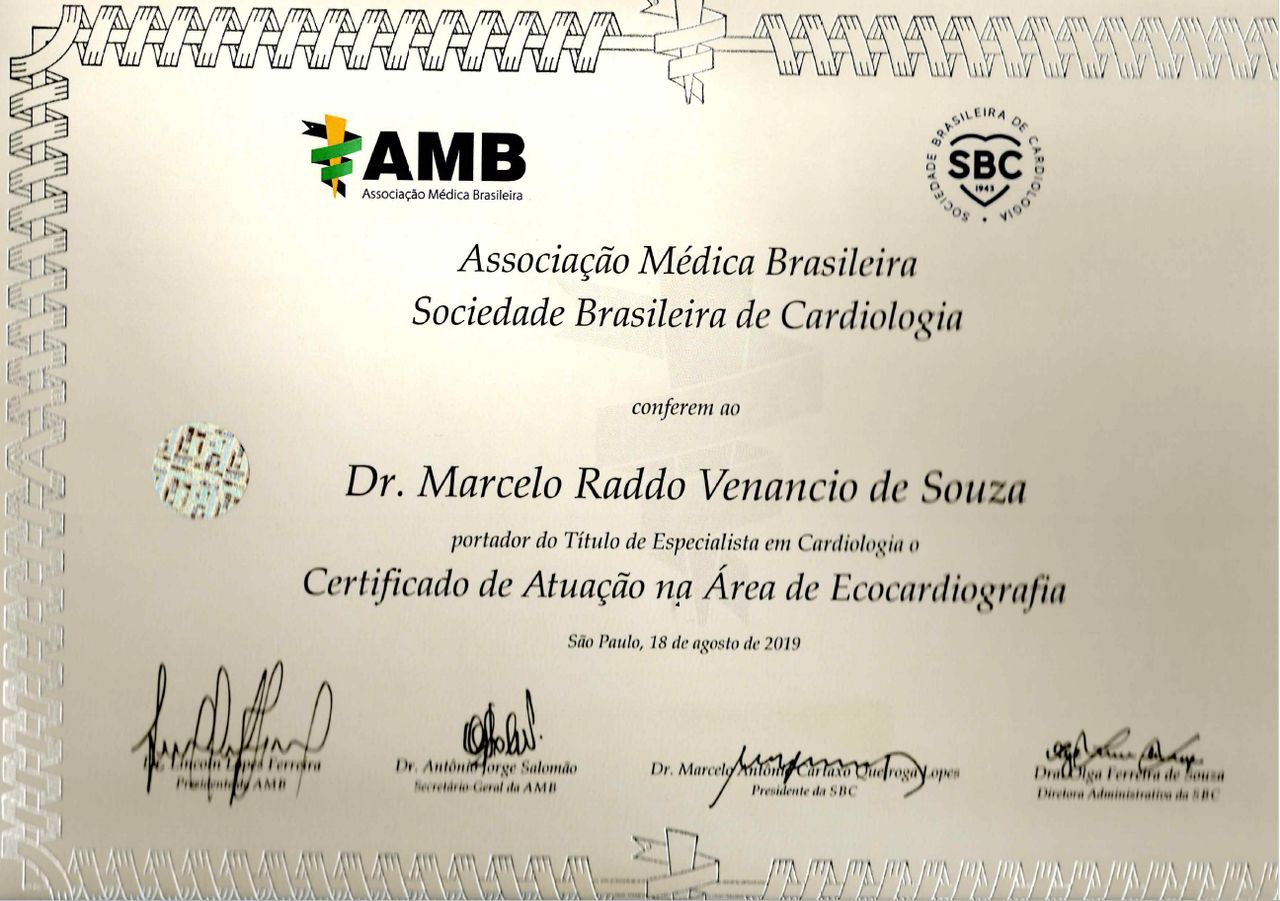 Quais são as principais especialidades de Marcelo Raddo Venancio de Souza?Marcelo Raddo Venancio de Souza é cardiologista. Te mostramos alguns dos serviços oferecidos pelo especialista graças à sua trajetória e vasta experiência: Ecocardiograma com Doppler Colorido, ECG (eletrocardiograma), Holter 24 horas, Consulta cardiologista, MAPA (Monitorização Ambulatorial de Pressão Arterial), Ecocardiograma, Eco Doppler.