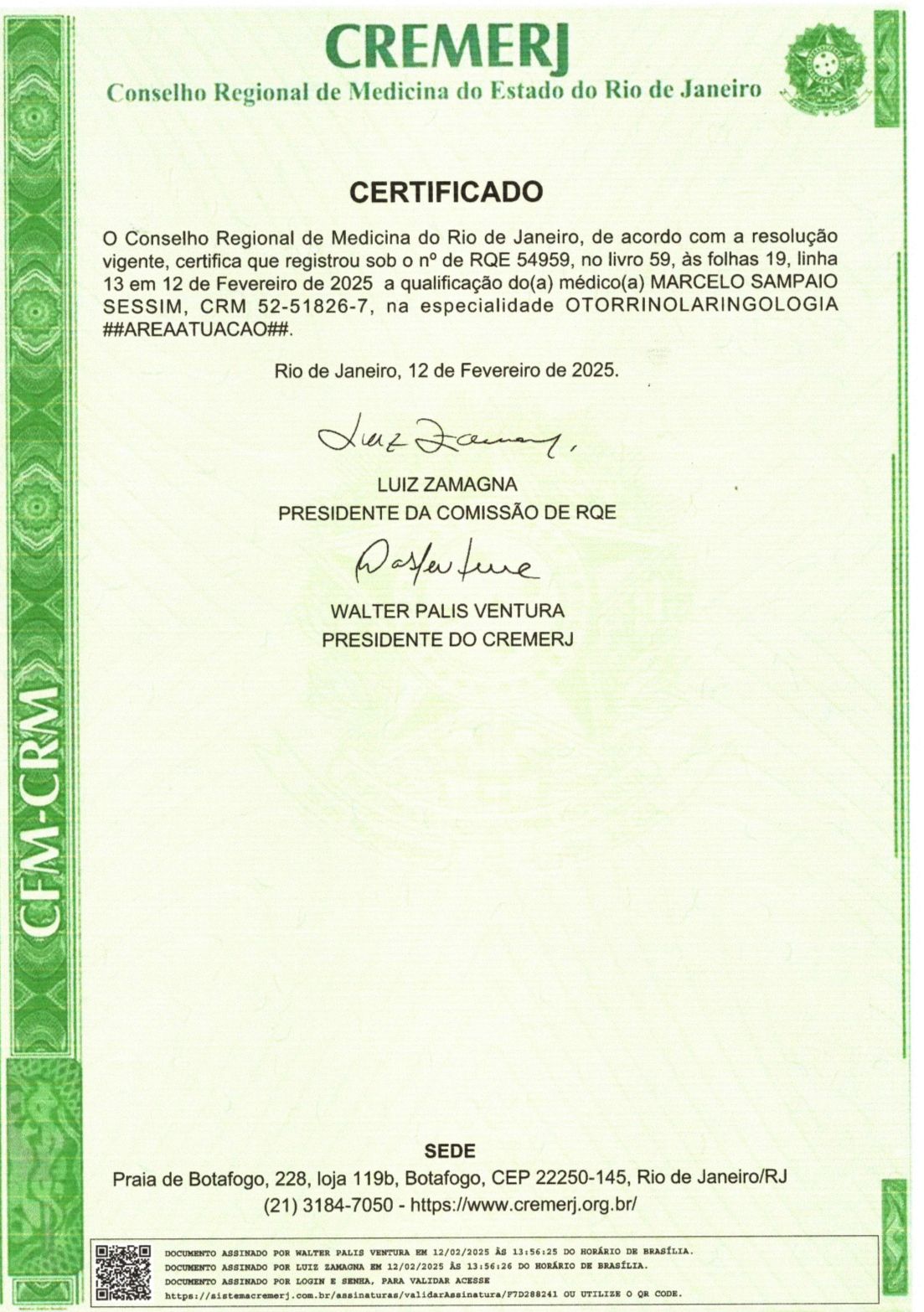 Número de registro: CRM:RJ 518267 - RQE Nº: 54959