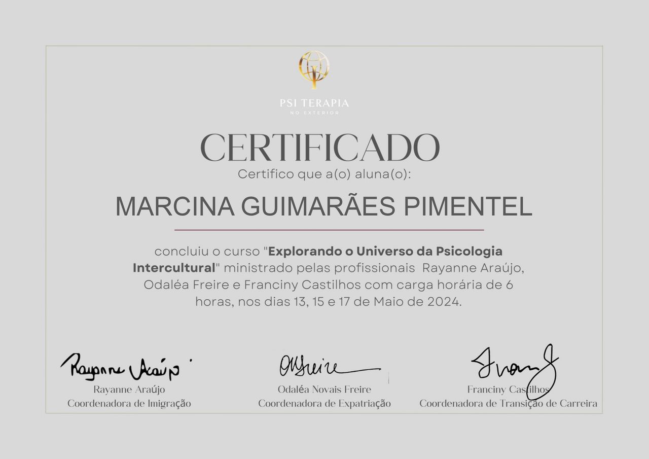 Em quais idiomas Marcina Guimarães Pimentel atende?Marcina Guimarães Pimentel atende em Português, Inglês.
