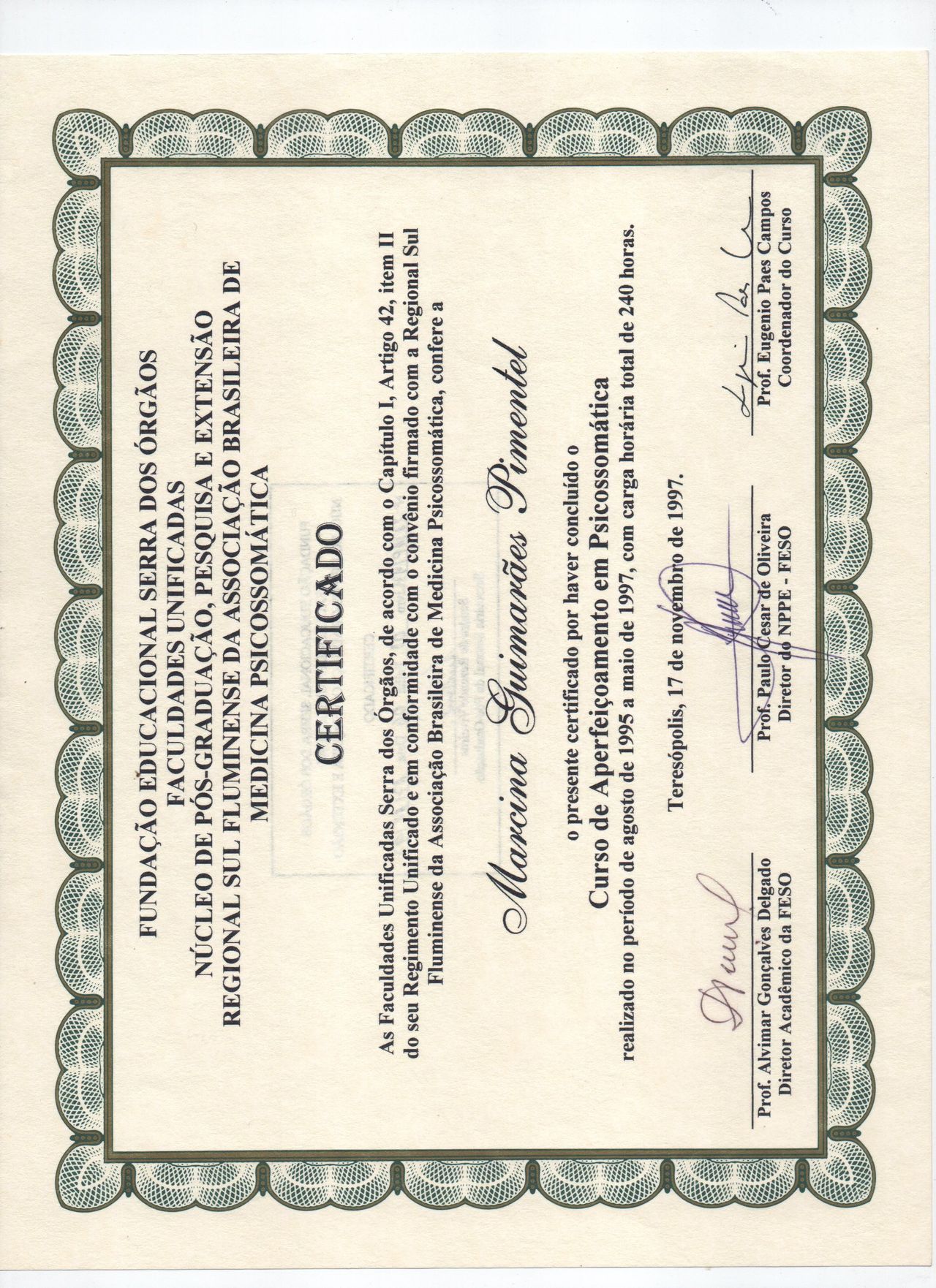 - Experiência de 38 anos em psicologia, devido ao trabalho em psicologia clínica no consultório particular, com formação em psicanálise e abordagens como a terapia Cognitivo Comportamental; em hospitais e diversas clínicas, exercendo atendimentos individuais e em grupos, atuando em equipe multidisciplinar, implantando projetos na cultura organizacional destas instituições, consequência da minha facilidade na identificação de oportunidades de aprimoramento, comunicação e criatividade. - Responsável pelo gerenciamento comercial de uma Clínica de Check-Up, objetivando ampliação da rede de credenciamento de empresas de grande porte na implantação de plano de benefício de check-up para seus executivos, devido a capacidade de valoração e conhecimento do SER HUMANO como um ser biopsicossocial, consequência da larga experiência e estudo sobre o comportamento humano. - Responsável pelo atendimento psicológico junto a equipe multidisciplinar em uma Clínica de Prevenção de Stress, objetivando a administração e redução do nível de stress de executivos. - Experiência em Psicologia Hospitalar Responsável pelo atendimento pré e pós cirúrgico das cirurgias cardíacas. Responsável pelo atendimento ambulatorial e de pacientes internados. Responsável pelo atendimento psicológico no CTI. Coordenação dos grupos de suporte com hipertensos e pacientes coronarianos. Participação na implantação dos projetos apresentados pelas diversas clínicas. Implantação de projetos na gestão administrativa da cultura organizacional da instituição. - Membro da Diretoria - Regional Sul Fluminense da Associação Brasileira de Medicina Psicossomática 1991 / 1995 Responsável pela implantação e divulgação de diversos eventos e congressos. - Experiência em Mediação Familiar.