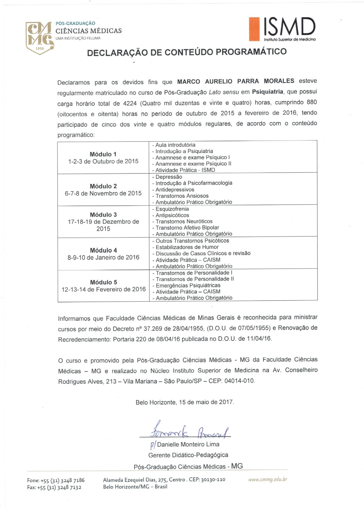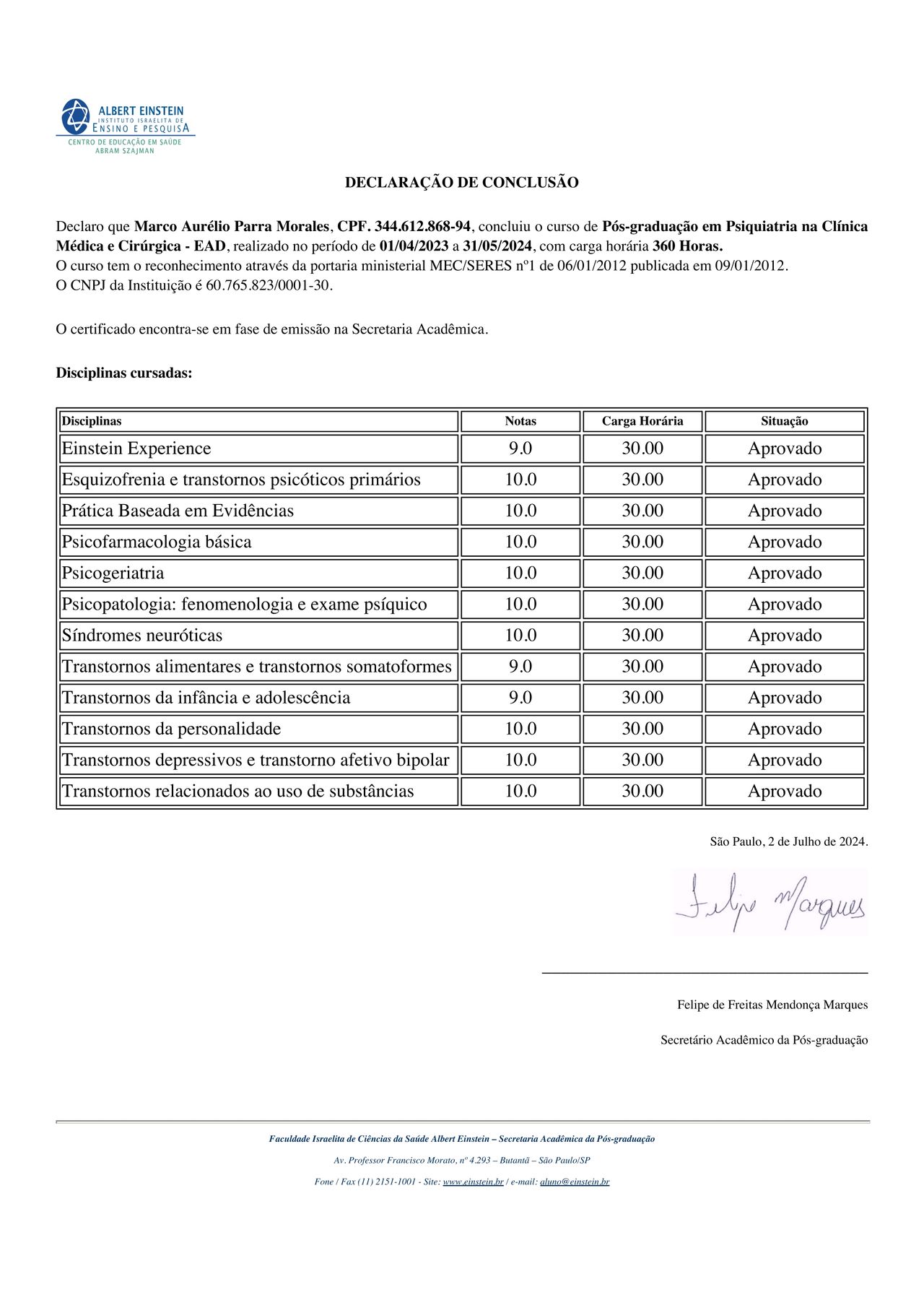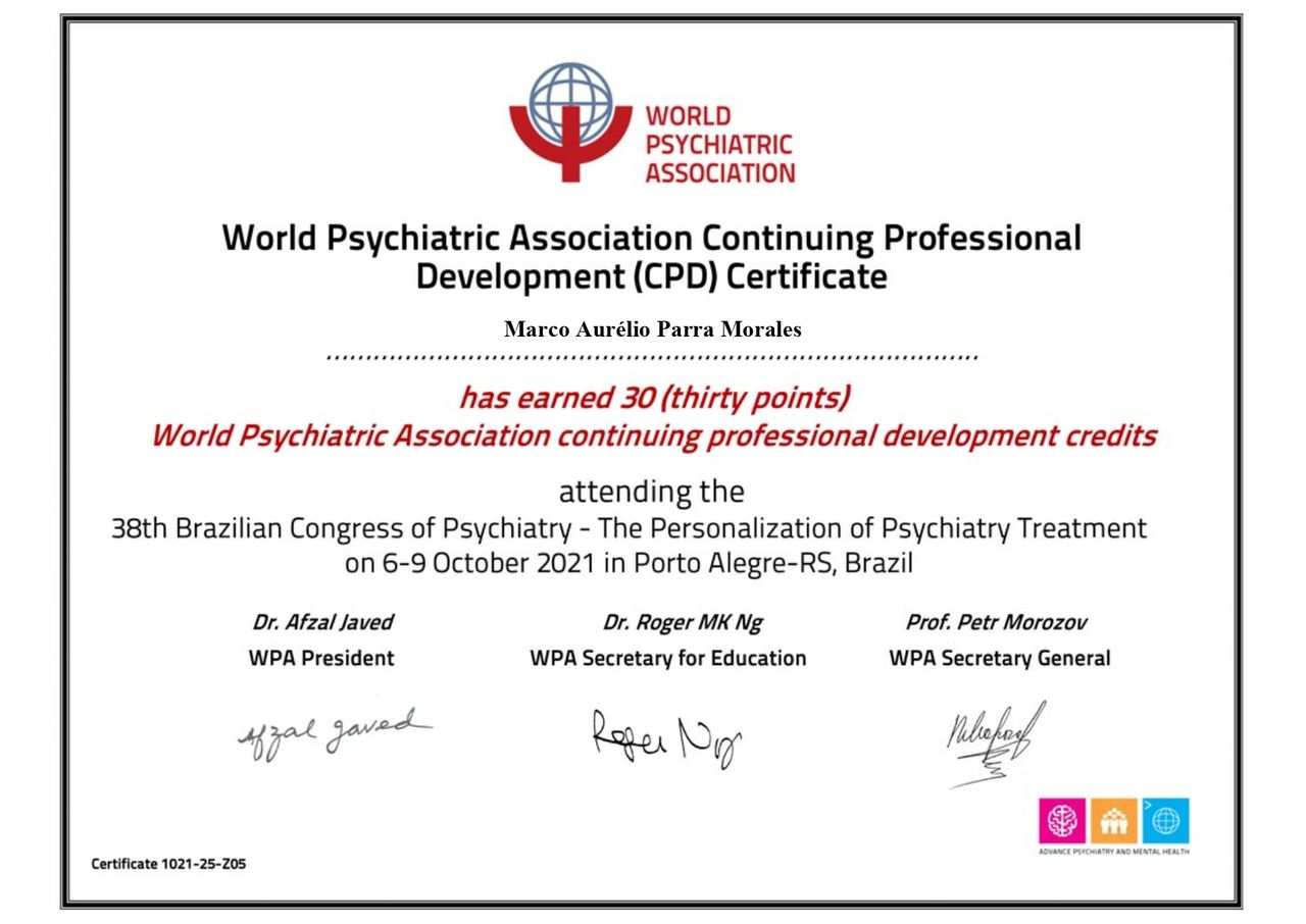 Possuo especialização em Psiquiatria pelo Instituto Superior de Medicina (ISMD) e pós-graduação em Psiquiatria pelo Instituto Israelita Albert Einstein. Desde 2018, dedico-me exclusivamente à Psiquiatria, mantendo atualização contínua por meio de cursos e congressos na área de Saúde Mental.