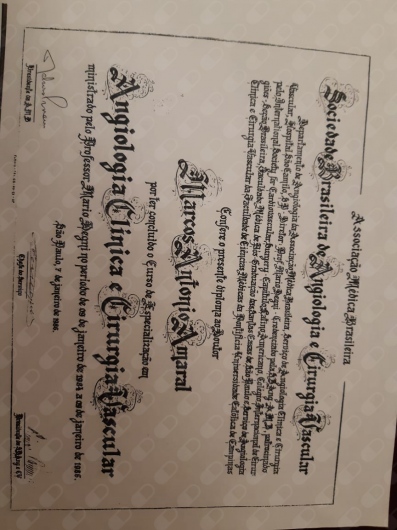 Sou Cirurgião Vascular e Angiologista pela Sociedade Brasileira de Angiologia e Cirurgia Vascular