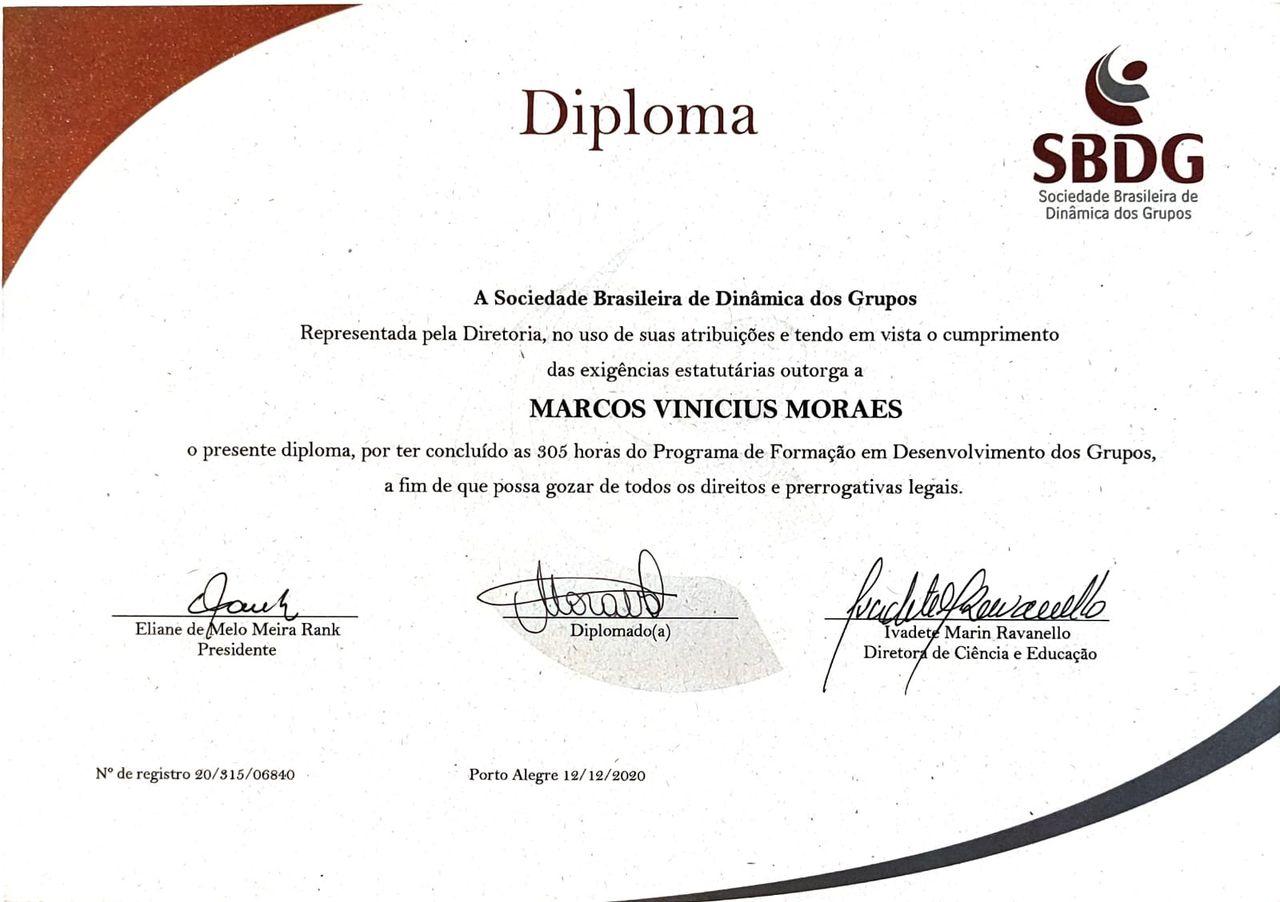 Sou muito grata por todo o aprendizado que estou tendo com ele. Recomendo de olhos fechados.• Psicólogo Marcos Vinicius Moraes (CRP 08-22008) • Outro •