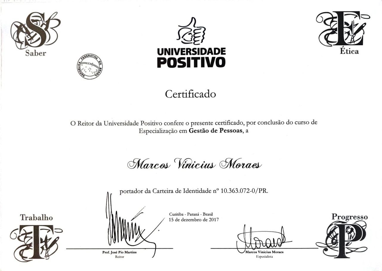 Possuo graduação em Psicologia e algumas formações e especializações como Gestão de Pessoas, Dinâmica dos Grupos e Coaching. Trabalho com a mediação de relações humanas há 17 anos, tendo atuado por organizações como Walmart, GVT, Positivo, Votorantim, MRV, Doctoralia e Paraná Banco.