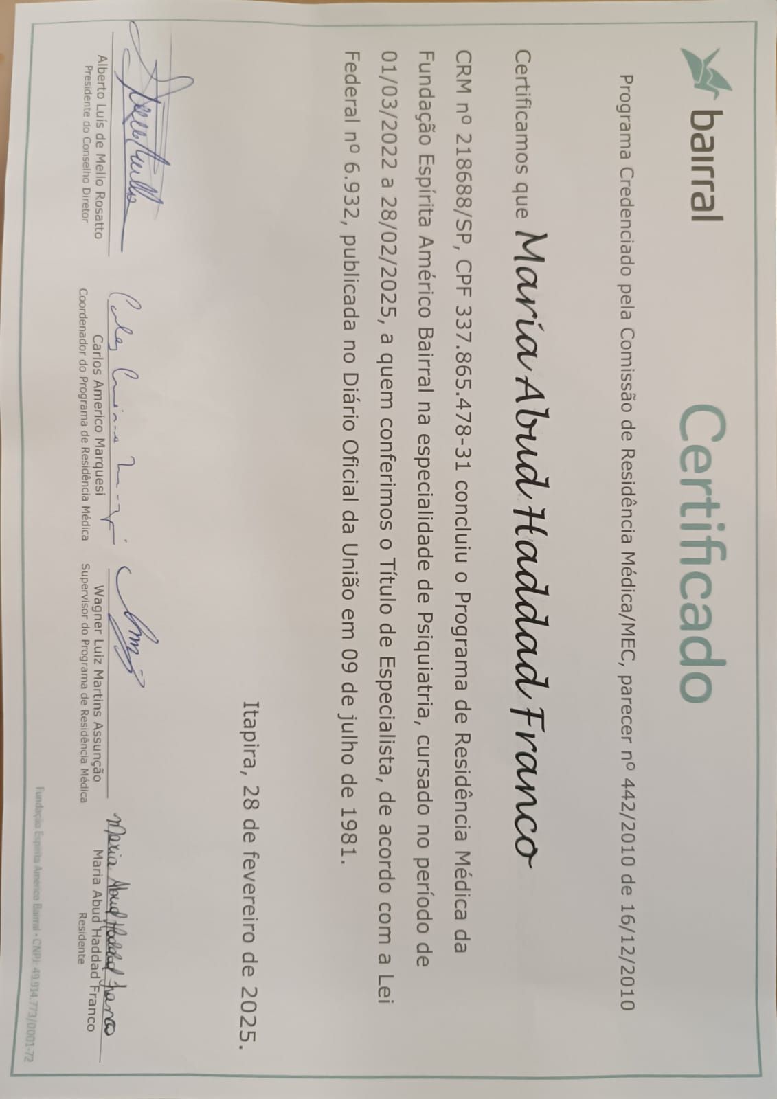 Você já passou por consulta com Dra. Maria Abud Haddad Franco? Conte aqui como foi. Outros pacientes vão te agradecer por ajudá-los a escolher o melhor especialista.