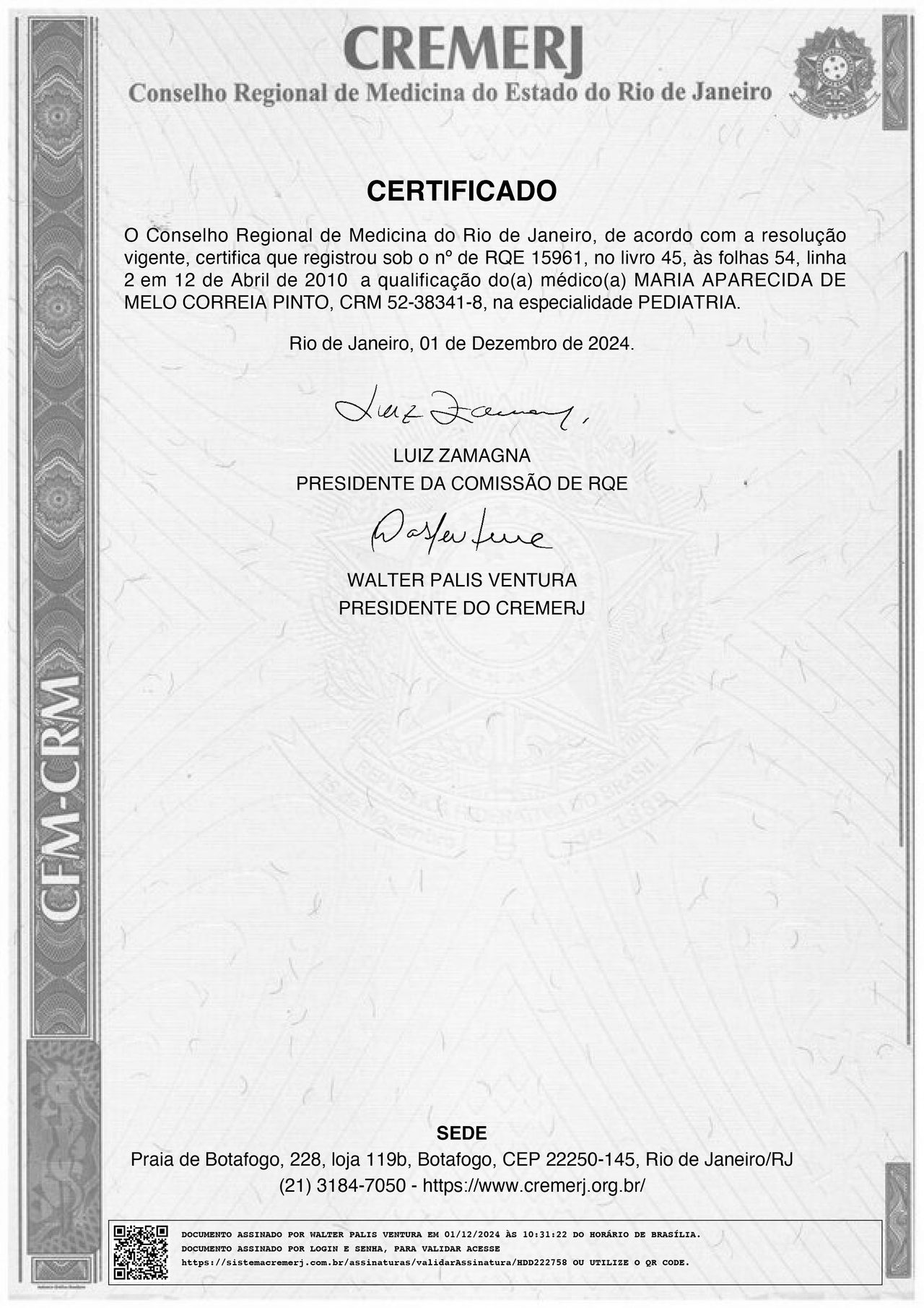 Número de registro: CRM RJ 52383418 RQE Nº: 15961