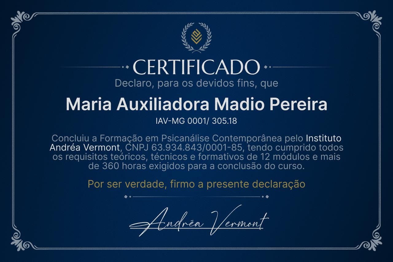 Olá , eu sou Maria Auxiliadora , Psicanalista.