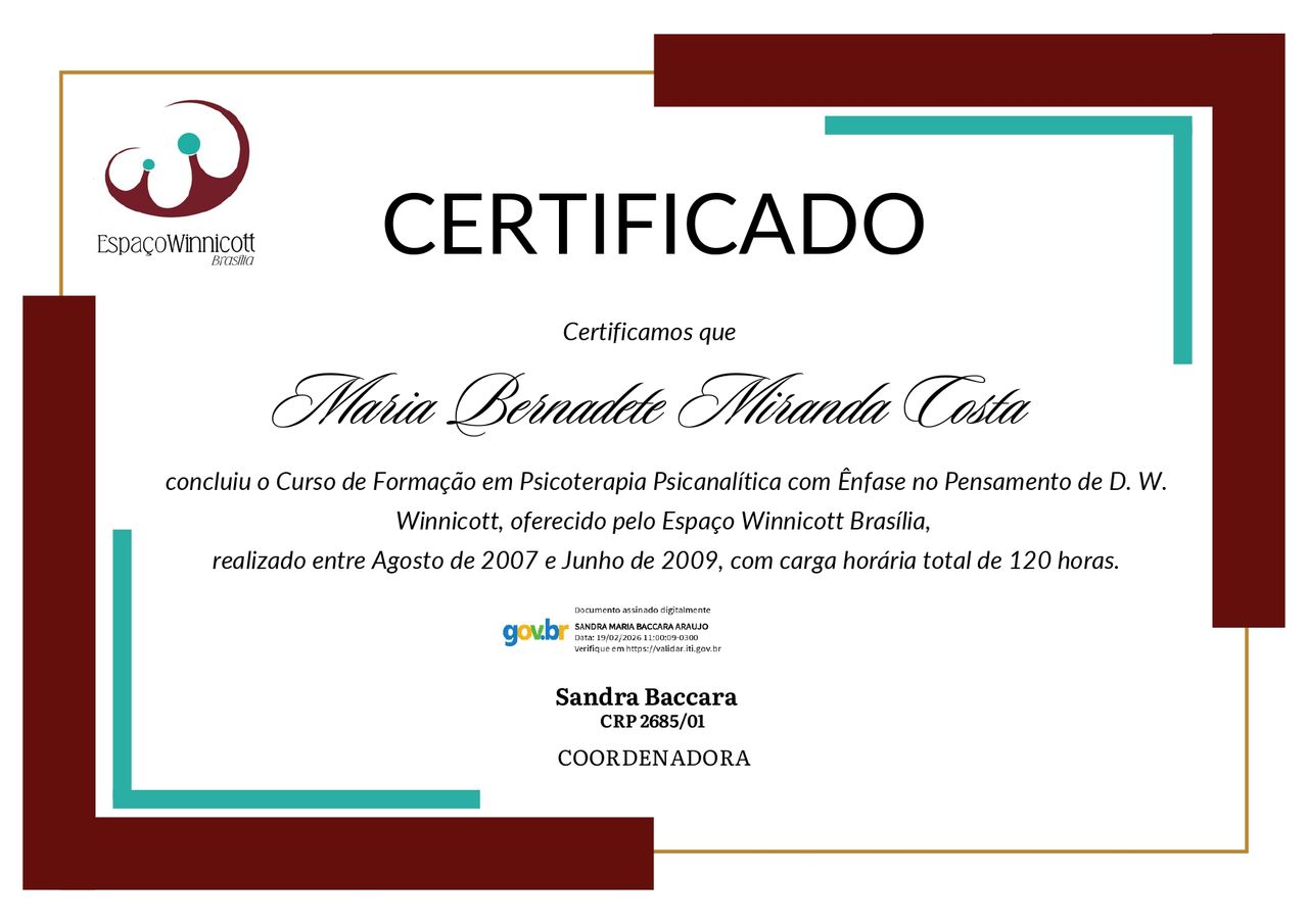 Quando poderia me consultar com Maria Bernadete Miranda Costa?Entre em contato diretamente com Maria Bernadete Miranda Costa para verificar sua disponibilidade.