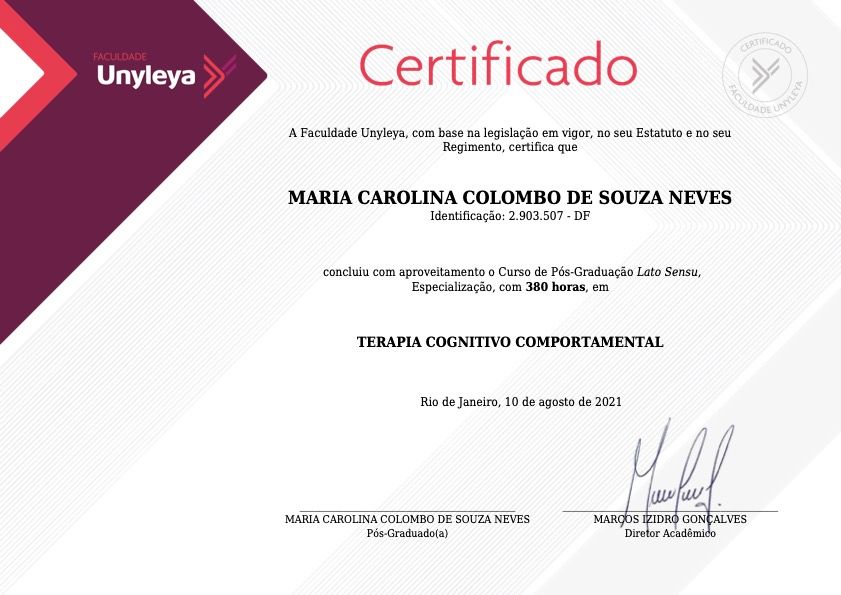 Quais são as principais especialidades de Maria Carolina Colombo?Maria Carolina Colombo é psicóloga. Te mostramos alguns dos serviços oferecidos pelo especialista graças à sua trajetória e vasta experiência: Teleconsulta, Atendimento Psicológico online para adulto, Psicoterapia online, Primeira consulta psicologia, Psicoterapia de Casal, Consulta Psicologia, Psicoterapia, Tratamento da ansiedade, Psicoterapia adulto, Terapia de Casal.
