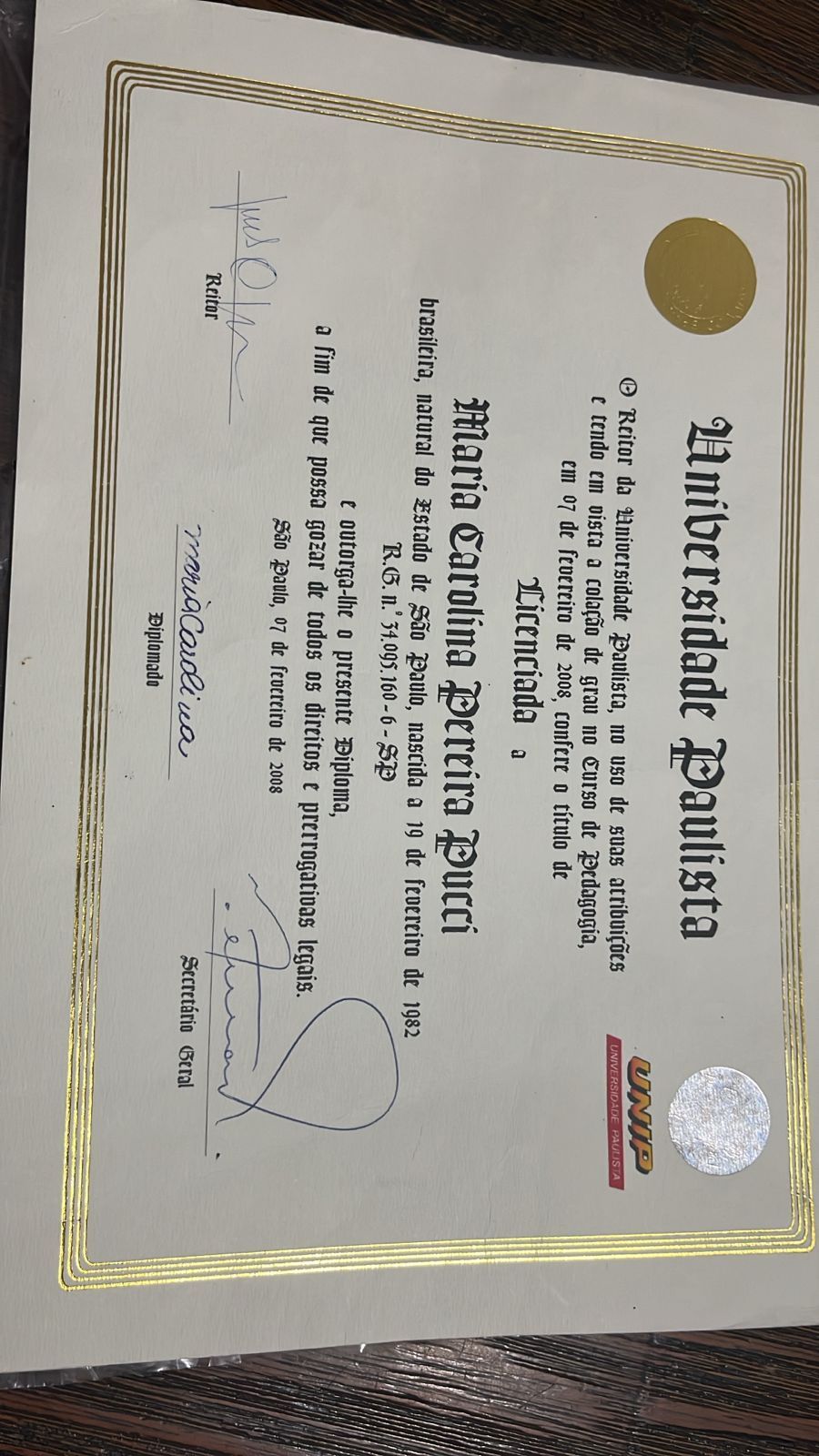 Número de registro: Certificado apresentado