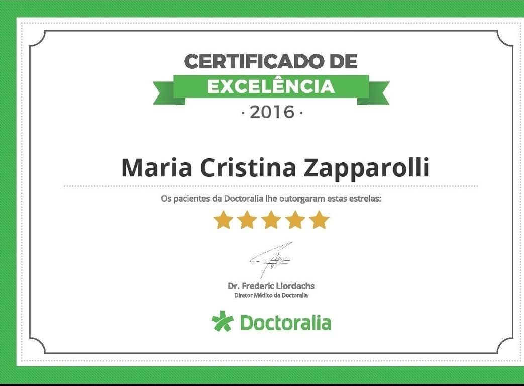 O que outros pacientes opinam sobre Maria Cristina Zapparolli?Um total de 6 pacientes já deixou uma opinião honesta e real sobre Maria Cristina Zapparolli, que tem uma avaliação média de 5 estrelas (de 5).