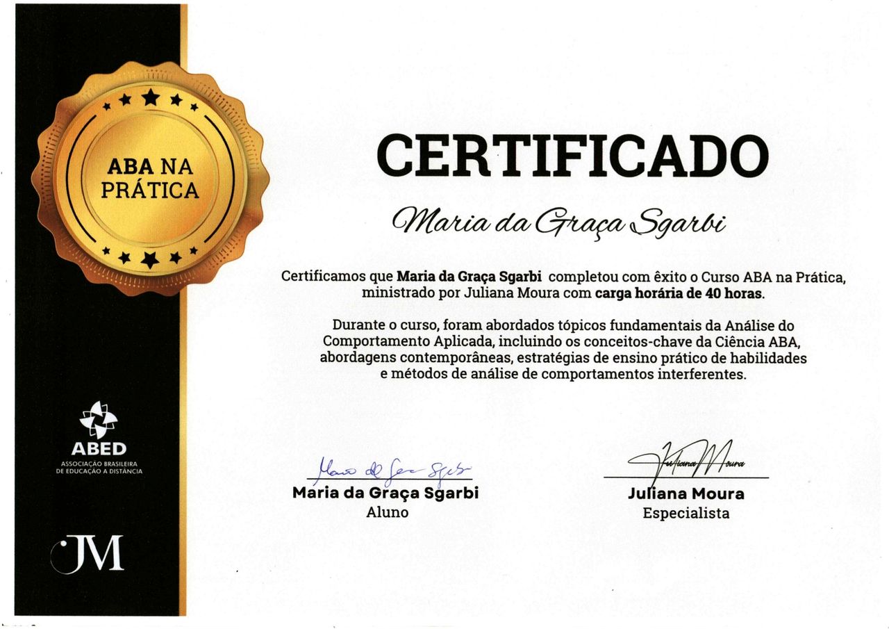 Gostaria de registrar minha admiração e gratidão pelo trabalho da psicopedagoga Maria da Graça, que acompanha o Enzo há alguns meses. Desde o início, ficou evidente o cuidado, a sensibilidade e a competência com que ela conduz cada atendimento.