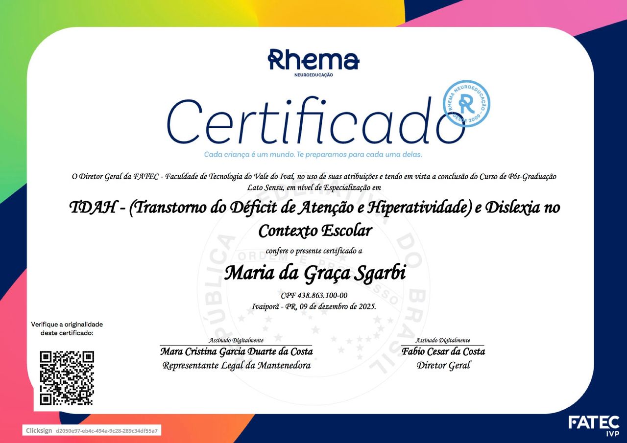 Maria da Graça vai além da técnica. Ela enxerga a criança como um todo, respeita o tempo de cada processo e cria vínculos genuínos, o que faz toda a diferença nos resultados. Seu trabalho é feito com empatia, escuta e grande comprometimento.