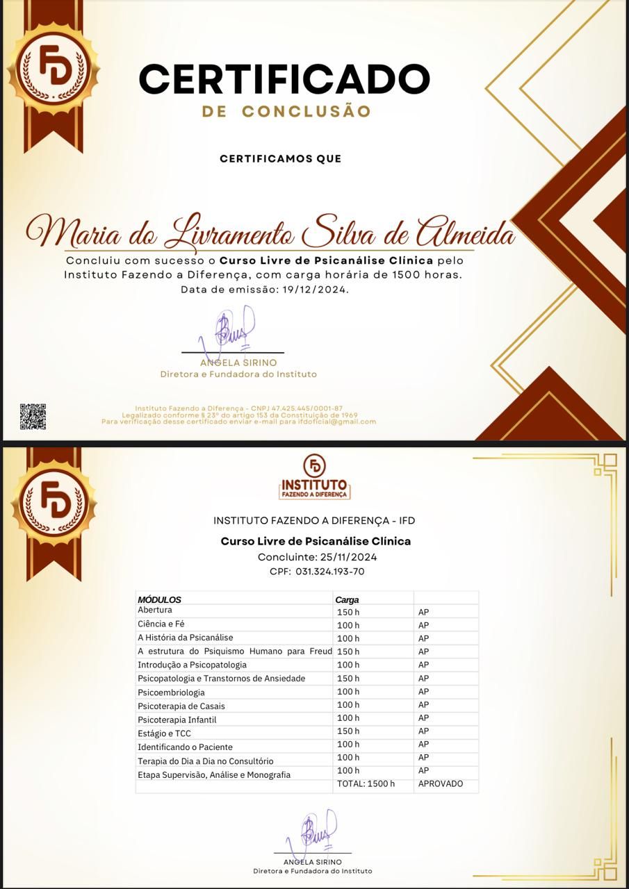 Quais são as principais especialidades de Maria do Livramento Silva de Almeida?Maria do Livramento Silva de Almeida é psicanalista. Te mostramos alguns dos serviços oferecidos pelo especialista graças à sua trajetória e vasta experiência: Primeira consulta psicanálise, Acompanhamento Terapêutico (AT), Transtorno de déficit de atenção e hiperatividade - TDAH, Orientação Escolar, Terapia Familiar, Teleconsulta, Orientação profissional, Orientação Vocacional, Psicoterapia, Psicoterapia adulto.