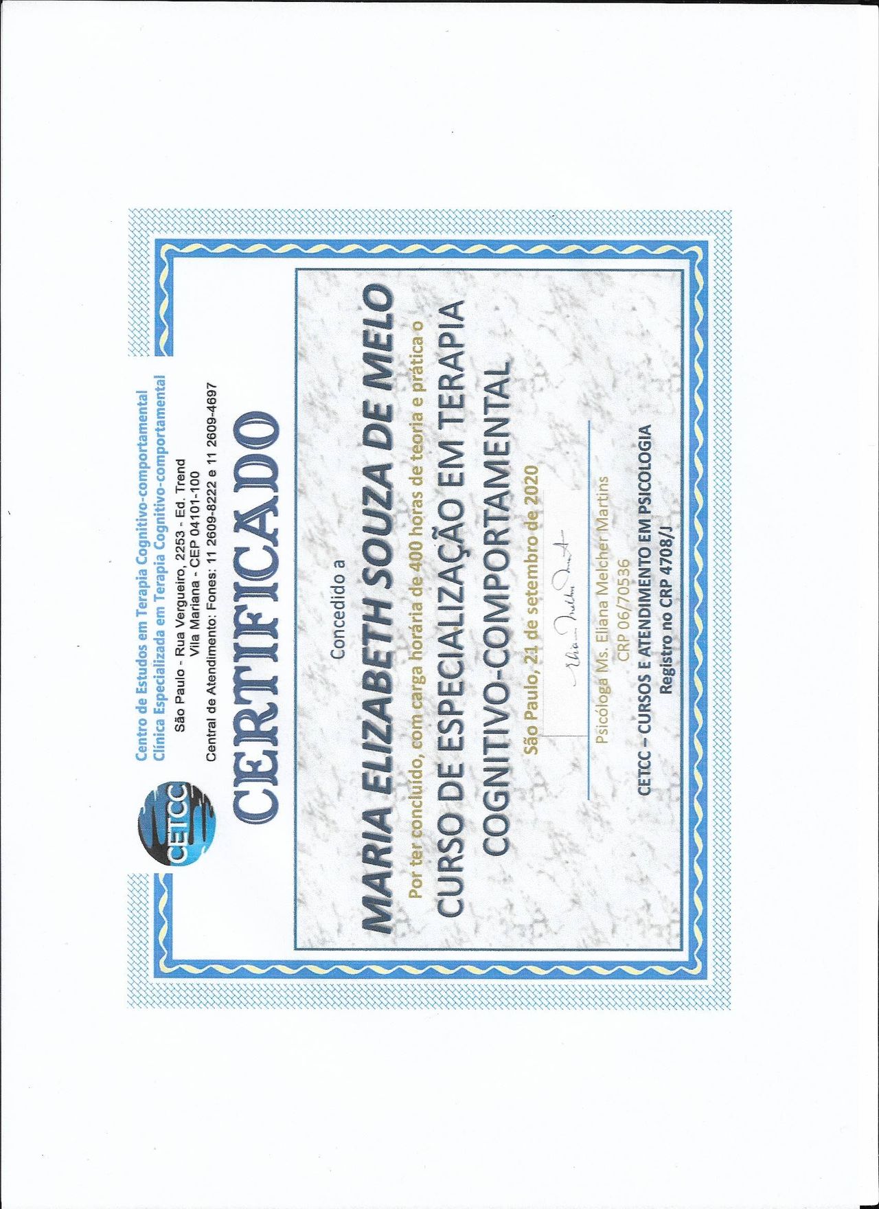 Quais são as principais especialidades de Maria Elizabeth de Melo?Maria Elizabeth de Melo é psicóloga. Te mostramos alguns dos serviços oferecidos pelo especialista graças à sua trajetória e vasta experiência: Teleconsulta, Atendimento psicológico online, Atendimento Psicológico online para adulto, Consulta de psicologia online, Terapia online, Atendimento Online em Psicoterapia, Psicoterapia online, Terapia de Casal Online, Tratamento da ansiedade, Tratamento de depressão.