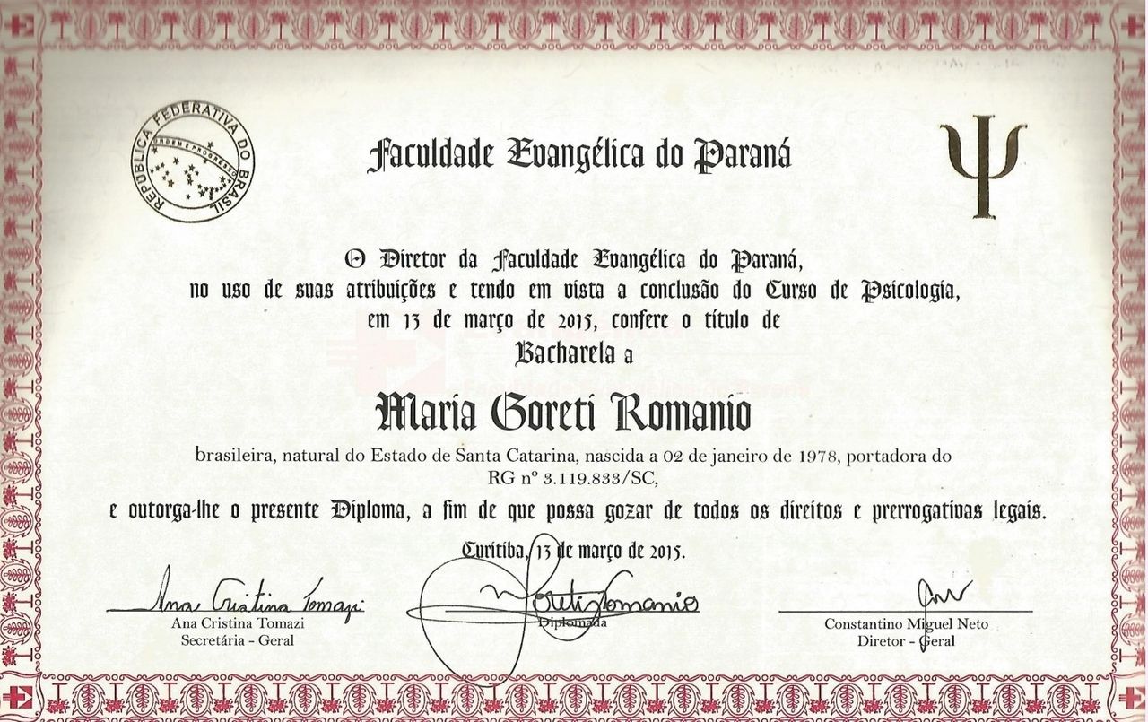 Quando poderia me consultar com Maria Goreti Romanio?Maria Goreti Romanio costuma ter horários disponíveis dentro da mesma semana ou para a semana seguinte. Verifique o calendário: você verá o primeiro horário disponível, atualizado em tempo real. Caso o horário sugerido não funcione para você, verifique outras datas. Agendar uma consulta é sempre imediato e gratuito.