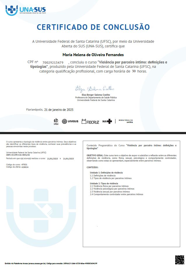 Posso passar por atendimento online com Maria Helena Fernandes, sem ter que ir até o consultório?Sim, Maria Helena Fernandes oferece atendimento online. Basta selecionar "Teleconsulta" ao agendar sua consulta e você poderá ver as datas e horários disponíveis.