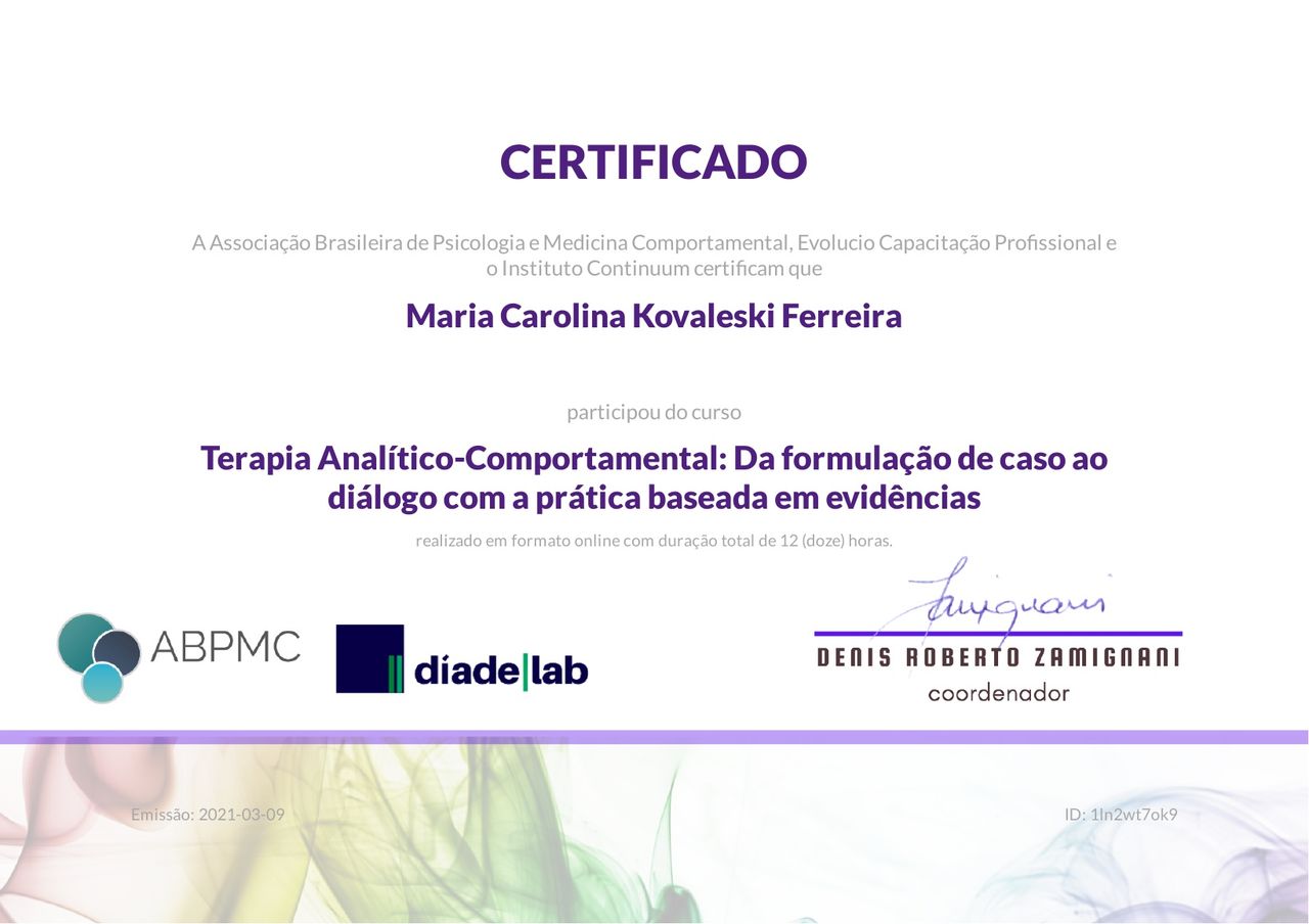 Quando poderia me consultar com Maria Kovaleski?Maria Kovaleski costuma ter horários disponíveis dentro da mesma semana ou para a semana seguinte. Verifique o calendário: você verá o primeiro horário disponível, atualizado em tempo real. Caso o horário sugerido não funcione para você, verifique outras datas. Agendar uma consulta é sempre imediato e gratuito.