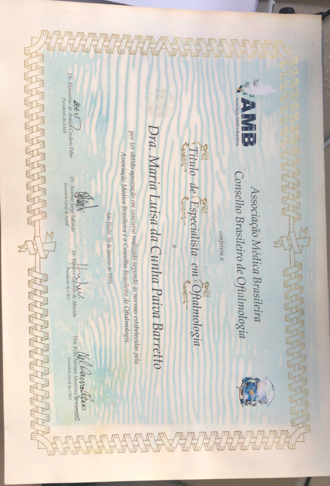 Dra. Maria Luisa da Cunha Paiva Barreto, médica formada pela Universidade Federal da Paraíba, com 33 anos de experiência. Médica oftalmologista responsável pelo Setor de Glaucoma no Centro Carioca do Olho (CCO), com RQE (Registro de Qualificação de Especialista) nº. 48.184, CRM nº. 52 57.318-3.