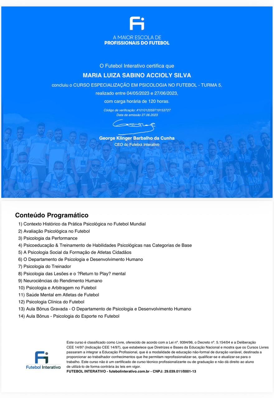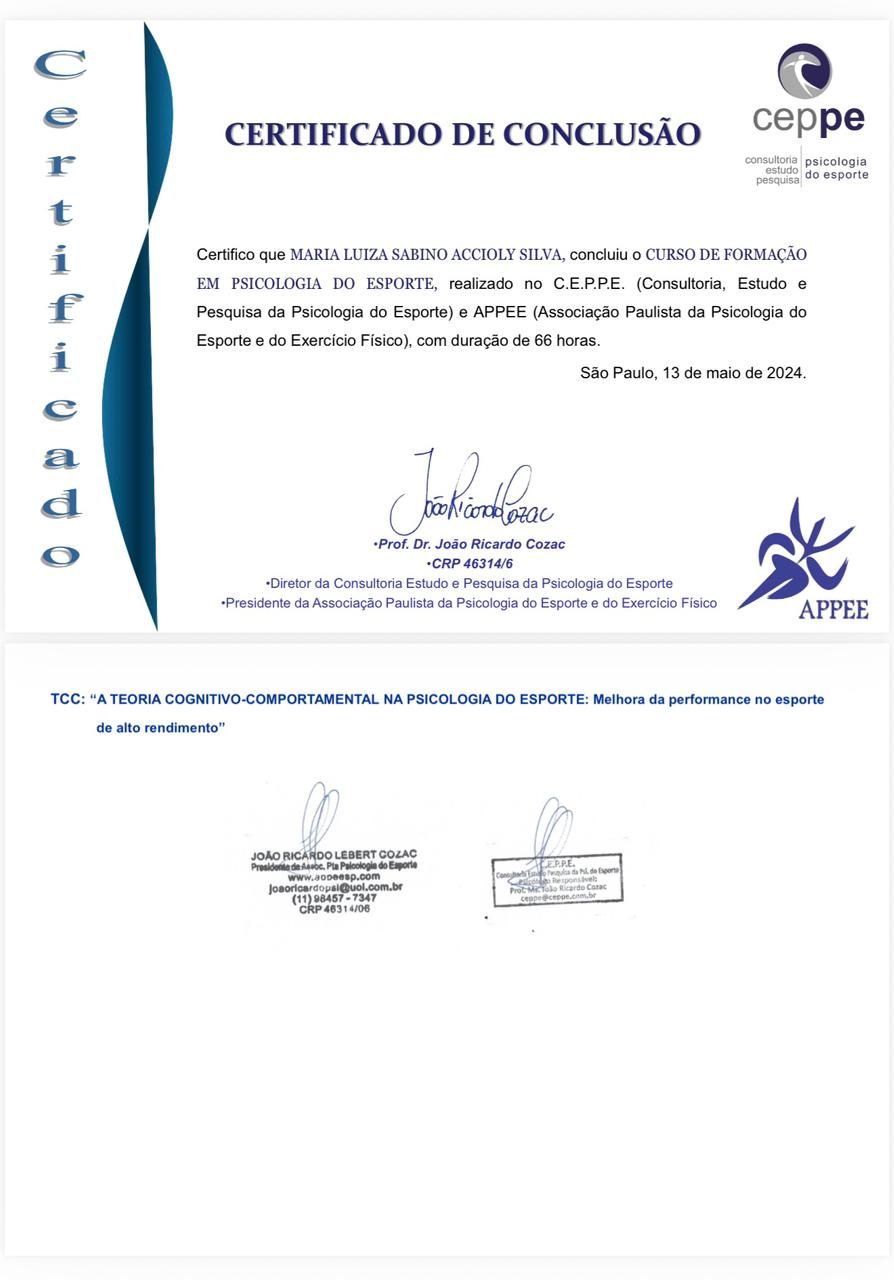 Sou Maria Luiza Accioly, psicóloga clínica e do esporte, com atuação voltada para adolescentes e adultos a partir dos 12 anos. Atendo exclusivamente online, oferecendo acolhimento, escuta qualificada e intervenções baseadas na Terapia Cognitivo-Comportamental (TCC), uma abordagem prática, estruturada e com foco em resultados reais.