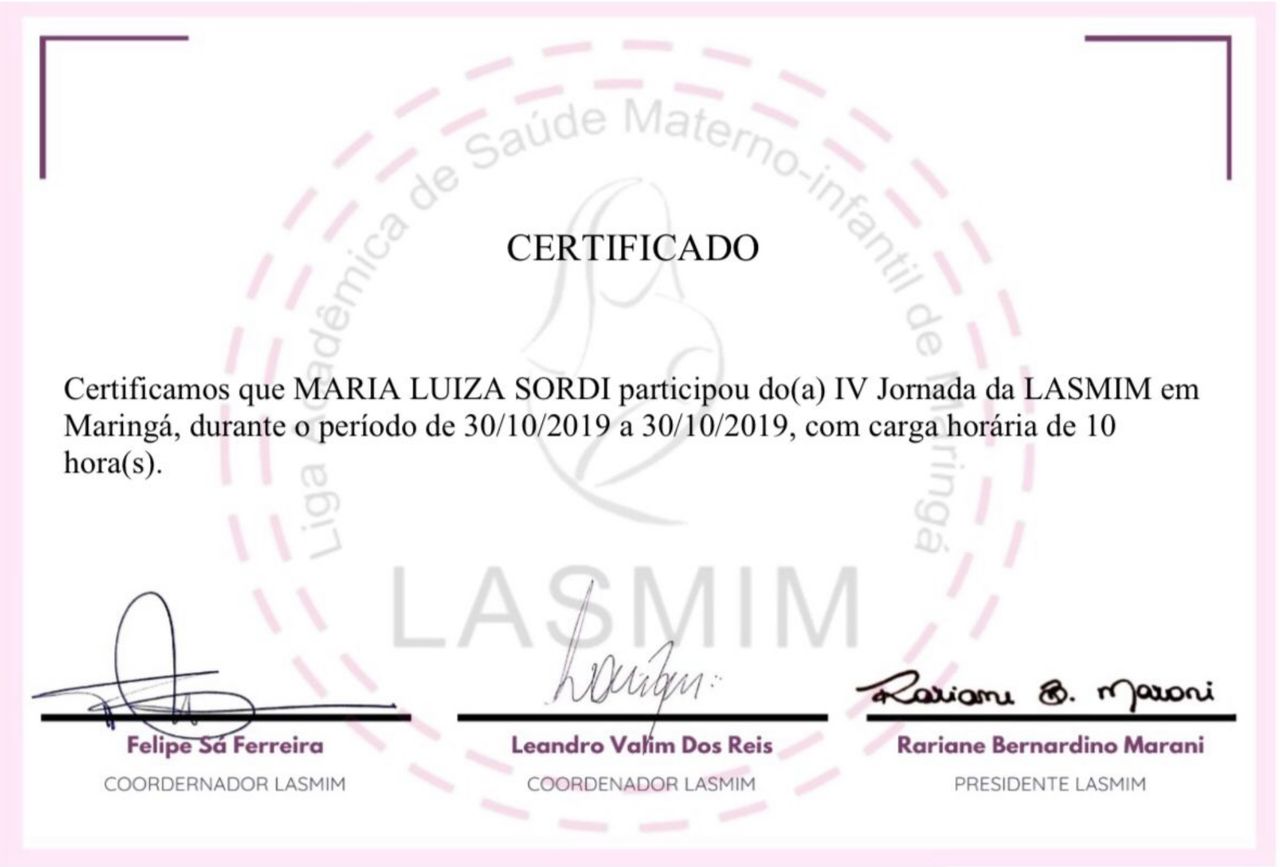 Quando poderia me consultar com Maria Luiza Sordi?No momento não há horários disponíveis com Maria Luiza Sordi, já que sua agenda está cheia nas próximas semanas. Recomendamos que entre em contato com Maria Luiza Sordi para tentar um encaixe ou caso deseje agendar sua consulta mais para frente.