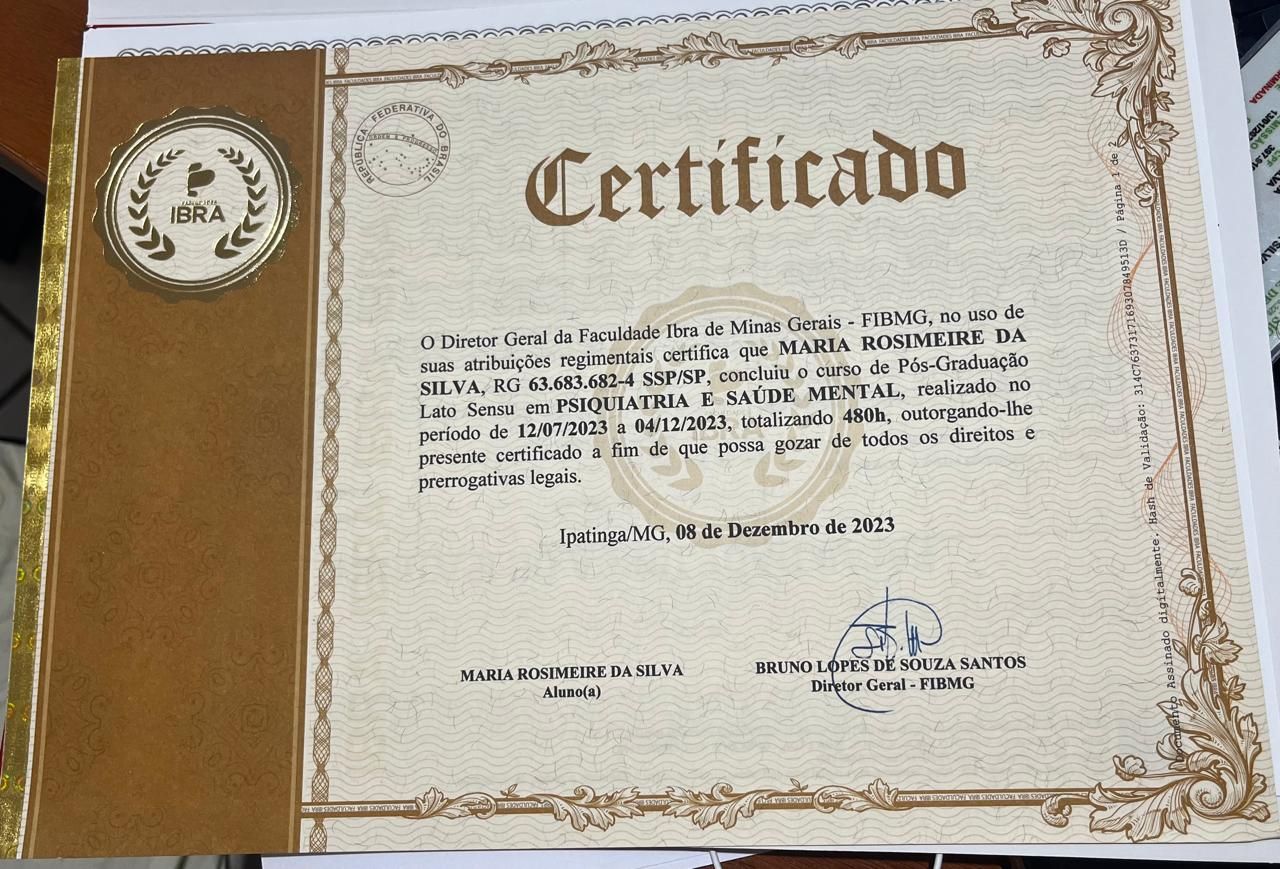 Seja bem vindo(a) meu nome é Mary Rosimeire, Sou Psicanalista Clínica e pós-graduada em Neuropsicologia, Psicologia clínica, e pós graduando Psiquiatria e saúde mental, com ênfase na psicanálise na abordagem psicanalítica atuando na área da saúde, tenho experiência em transtornos .