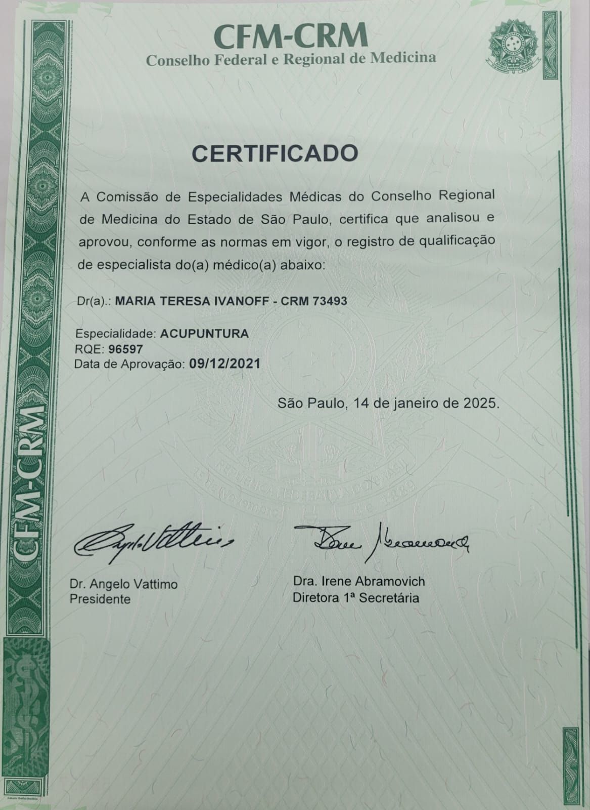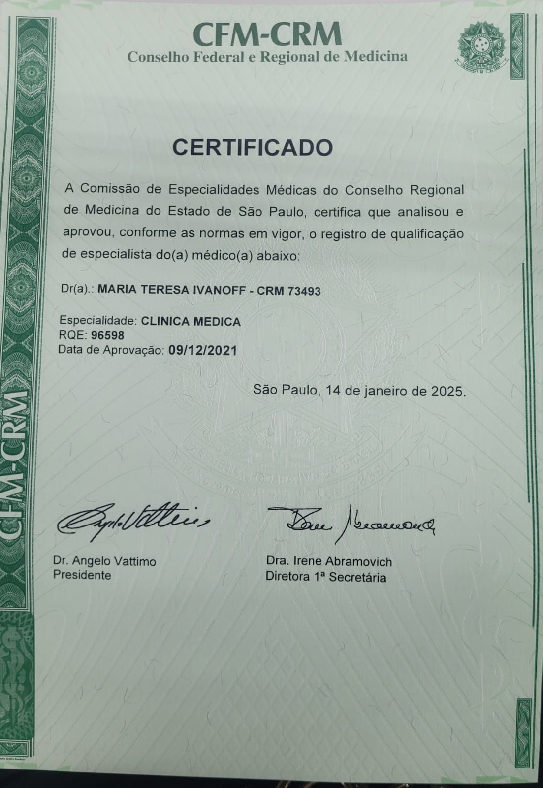 Quando poderia me consultar com Maria Teresa Ivanoff ?Entre em contato diretamente com Maria Teresa Ivanoff para verificar sua disponibilidade.