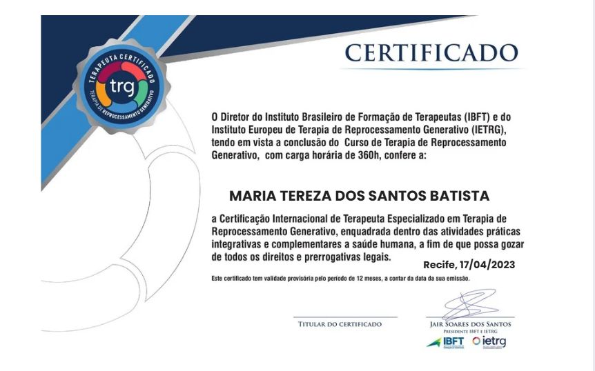 - Especialista em trg - terapia de reprocessamento generativo