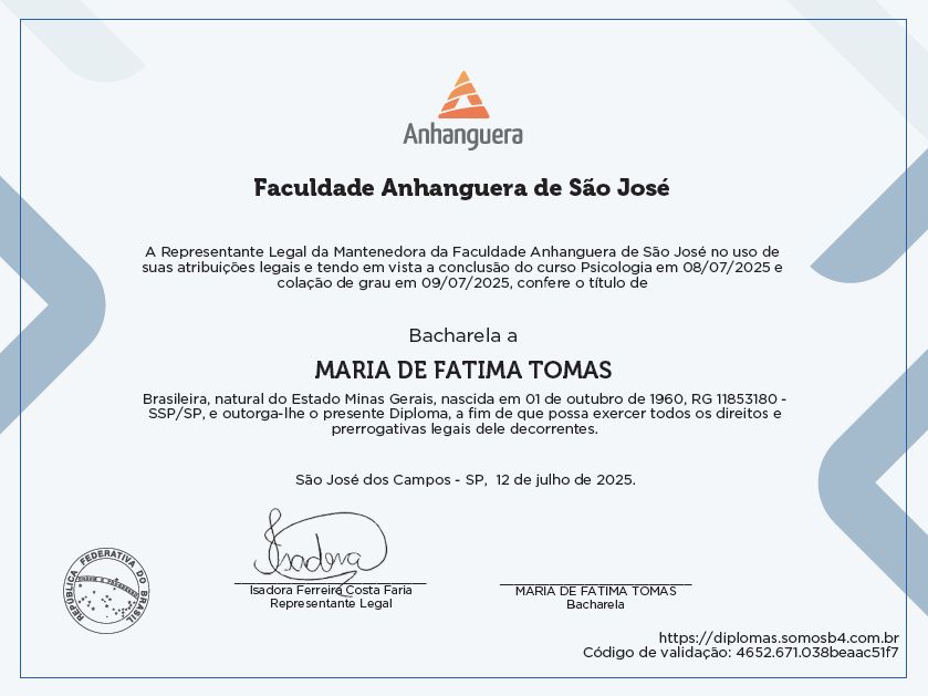 Meu compromisso é caminhar ao lado de cada paciente, respeitando seu tempo e sua singularidade, favorecendo um processo terapêutico profundo e transformador, que promova mais consciência, autonomia e equilíbrio emocional.