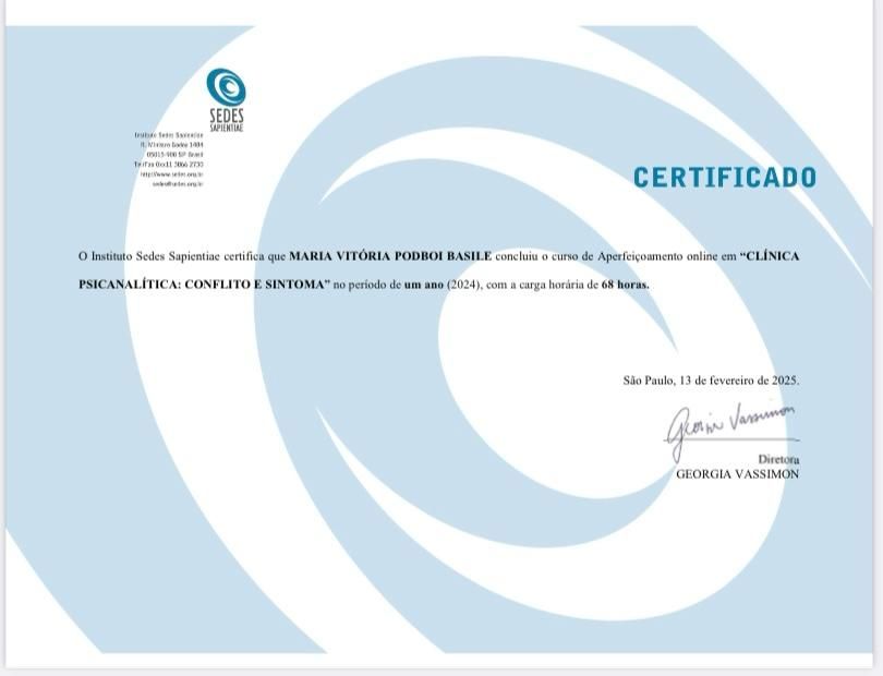Iniciamos o tratamento com muita falação da minha parte, e quando precisei ouvir algo, ela me trouxe palavras equilibradas. Sempre muito paciente, me ensina muito a ter paciência comigo mesma também. E em determinado momento iniciamos uma nova etapa no tratamento, trazendo o corpo para falar também. Essa etapa tem trazido muitas descobertas. Agradeço imensamente Maria Vitória!
