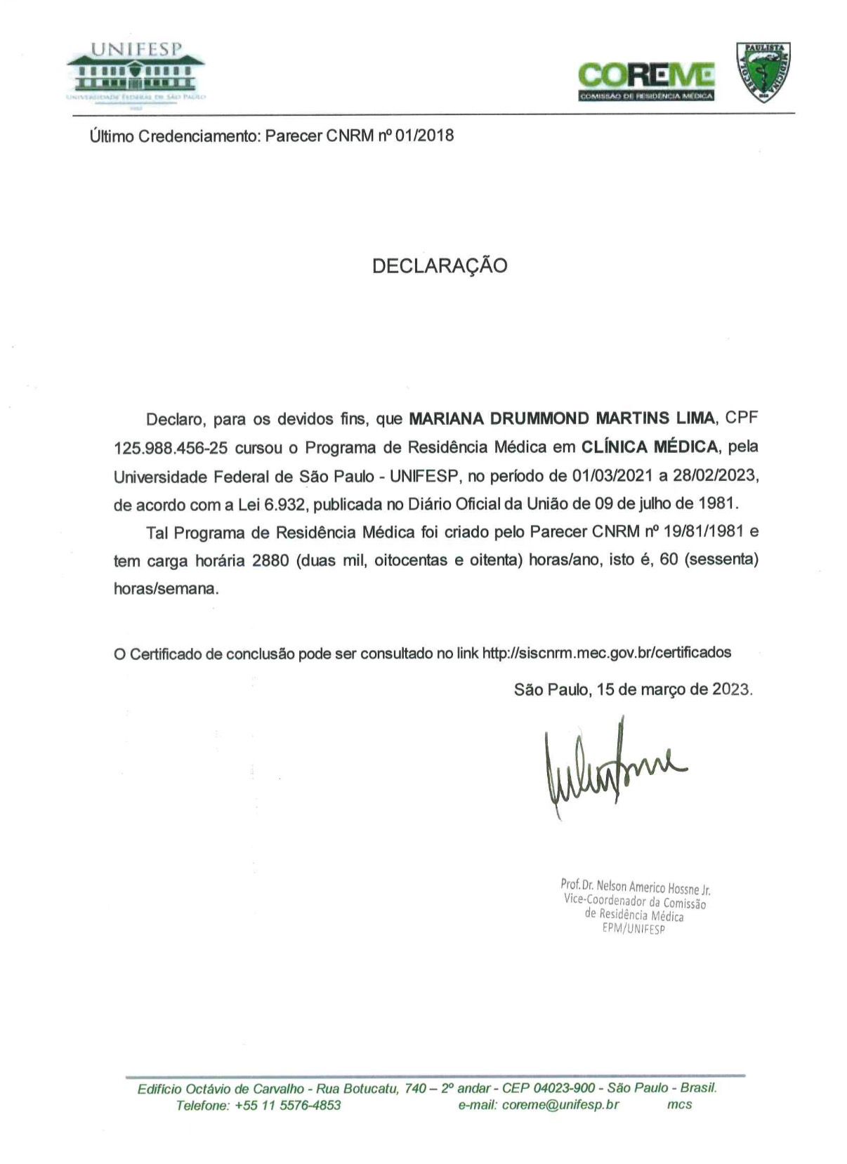 Quais são as principais especialidades de Mariana Drummond Martins Lima?Mariana Drummond Martins Lima é reumatologista, especialista em clínica médica. Te mostramos alguns dos serviços oferecidos pelo especialista graças à sua trajetória e vasta experiência: Primeira consulta Reumatologia, Consulta médica, Retorno de consultas por telemedicina, Análise da densidade óssea na determinação da osteoporose , Tratamento para fibromialgia, Consulta Reumatologia, Retorno de consultas Reumatologia, Tratamento de osteoporose, Parecer em doenças de dificil tratamento, Encaixe Telemedicina.