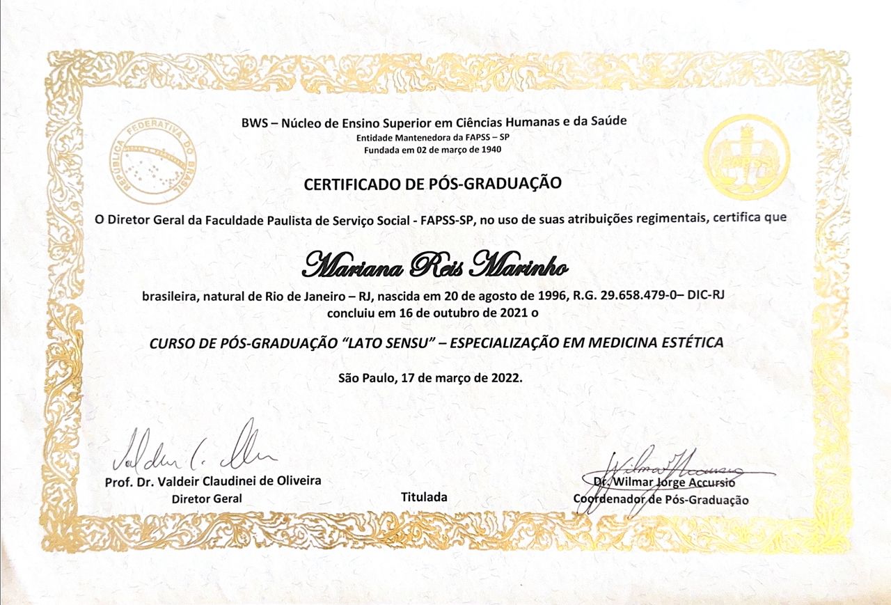 Quais são as principais especialidades de Mariana Marinho?Mariana Marinho é dermatologista. Te mostramos alguns dos serviços oferecidos pelo especialista graças à sua trajetória e vasta experiência: Tratamento para flacidez de pele, Peeling, Tratamentos de olheiras, Rejuvenescimento facial, Tratamento para acne, Preenchimento facial, Consulta Dermatologia, Tratamento para melasma, Ácido poliláctico - sculptra, Aplicação da toxina botulínica.