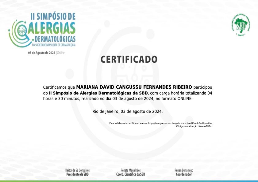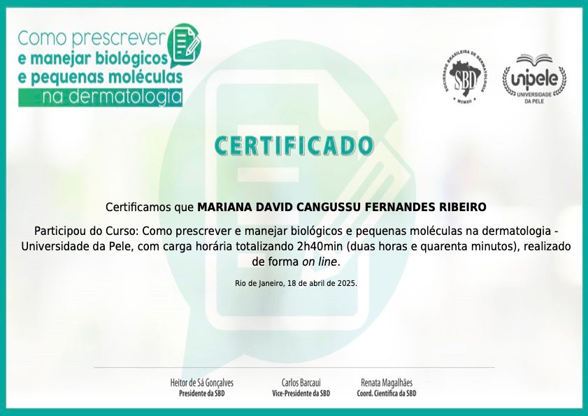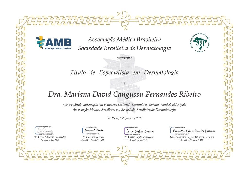 Residência Médica em Dermatologia pelo Hospital das Clínicas da UFMG.