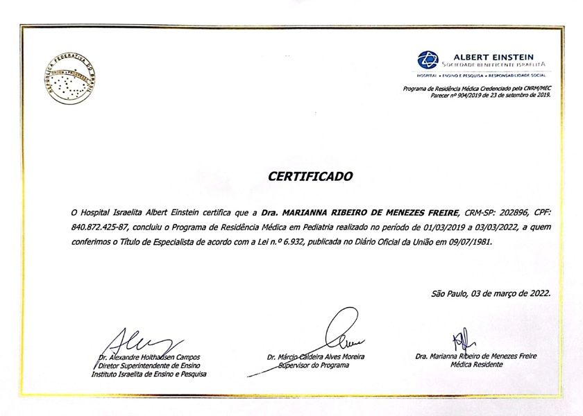 Número de registro: CRM SE 6056 - RQE Nº 5448 (Pediatria)
