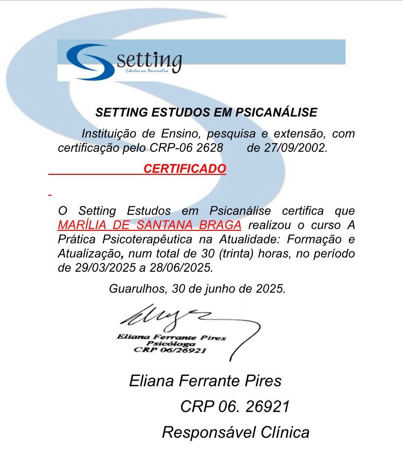 Consulta Presencial Marília Braga • Primeira consulta psicologia