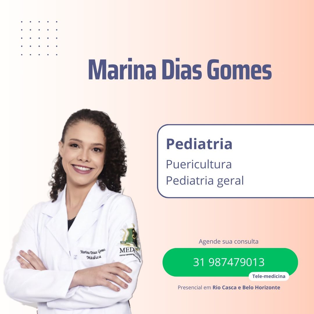 Quais são as principais especialidades de Marina Dias Gomes?Marina Dias Gomes é generalista. Te mostramos alguns dos serviços oferecidos pelo especialista graças à sua trajetória e vasta experiência: Consulta generalista, Consulta Pediatria, Consulta médica.