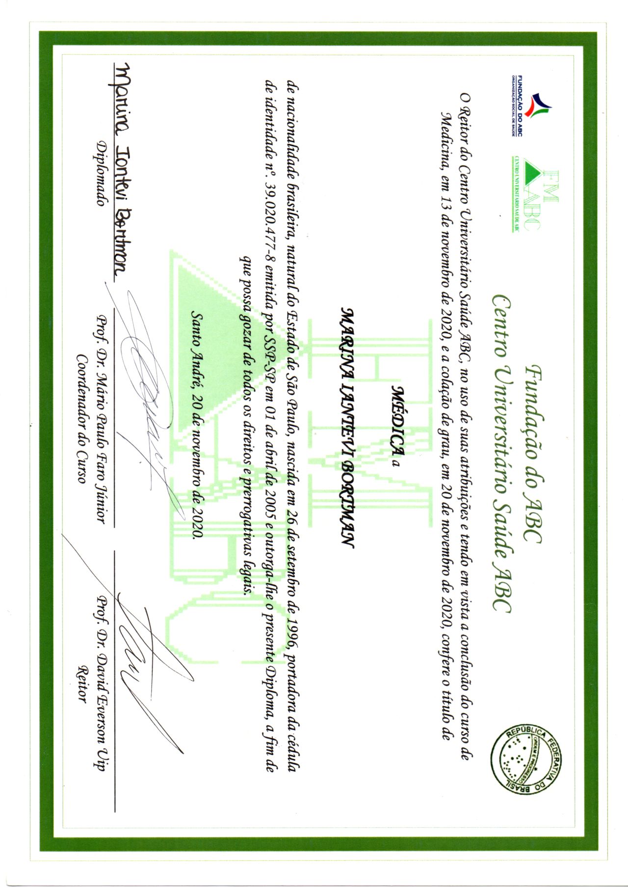 Médica, formada pela Faculdade de Medicina do ABC em 2020. Atualmente, no último ano de Residência Médica em Psiquiatria pelo Hospital Israelita Albert Einstein (HIAE), com experiência em atendimentos ambulatoriais, emergências e interconsultas hospitalares.