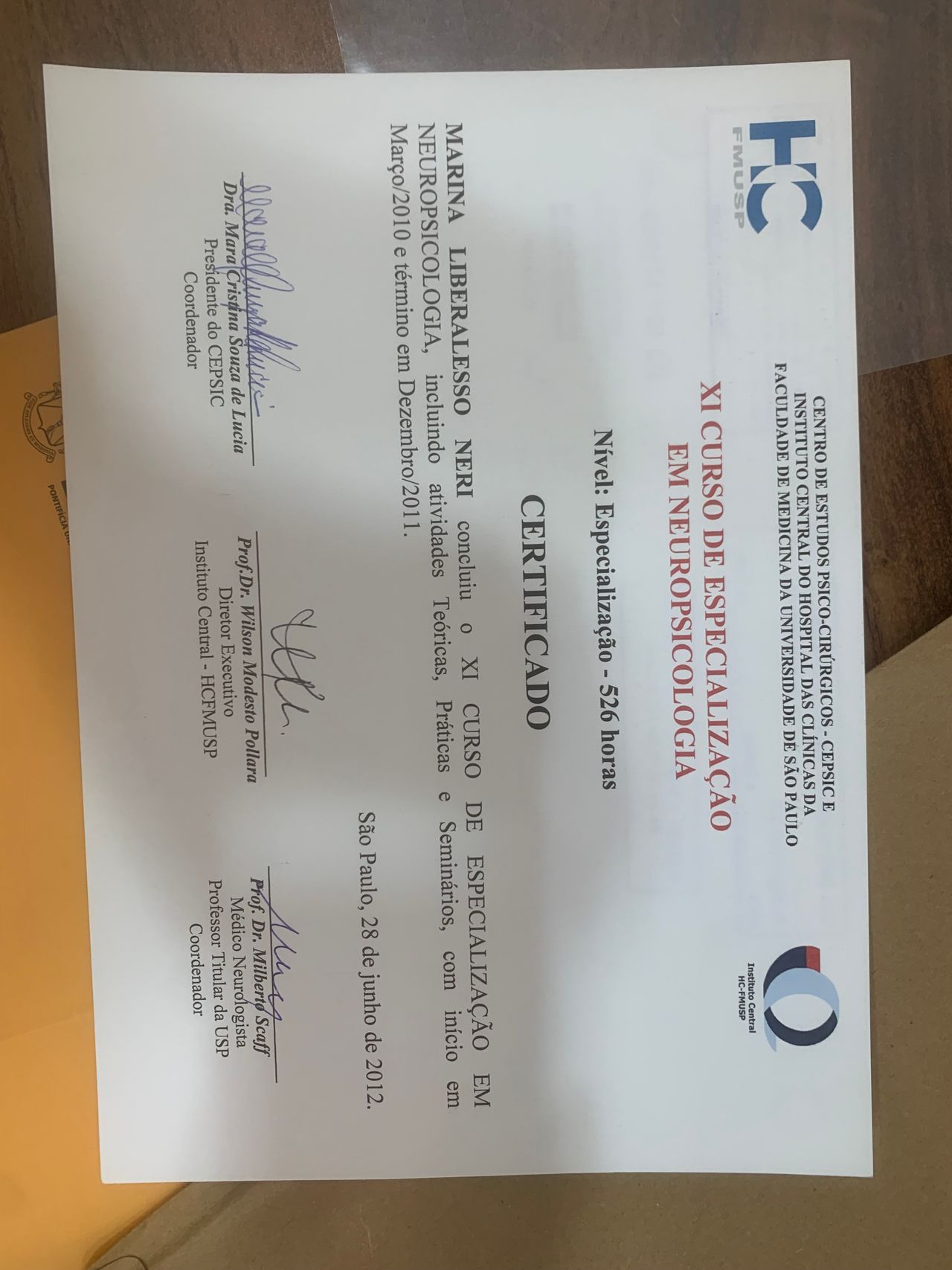 5. Há cerca de 8 anos presto serviços de Avaliação Neuropsicológica aos pacientes de profissionais gabaritadissimos em um consultório com Psiquiatras de adolescentes, de adultos e idosos, além de uma Geriatra..