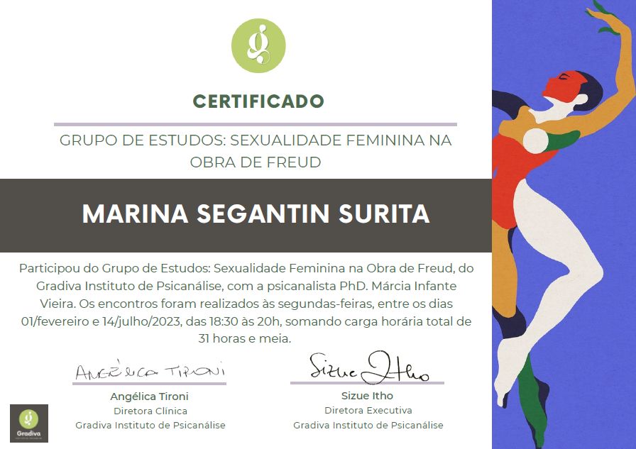 Sou pós-graduada pelo Instituto Sedes Sapientiae, na área da clínica psicanalítica. Isso significa que, nas sessões, o convite é falar livremente, sem precisar organizar tudo antes — a gente vai descobrindo o caminho enquanto caminha. Atendo online e presencialmente. E sempre que alguém entra em contato, costumo fazer uma primeira ligação para que possamos nos conhecer, sem custos, porque iniciar uma terapia é um passo importante, merece cuidado e principalmente requer confiança na profissional.