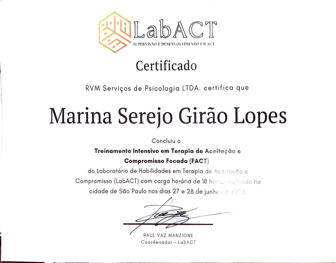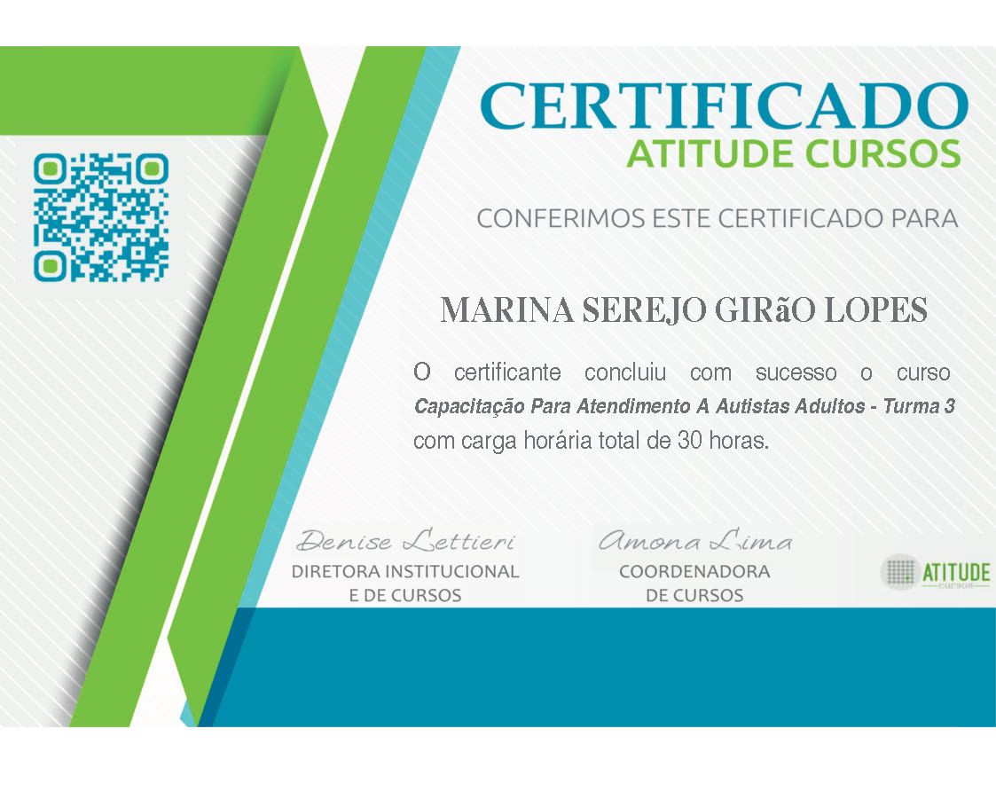 Marina é uma profissional extremamente competente e assertiva. Se dedica ao investimento em intervenções eficazes e a uma escuta assertiva. Constrói um ambiente acolhedor e empático que é um diferencial para avaliações neuropsicológicas e para a terapia. Recomendo sempre.